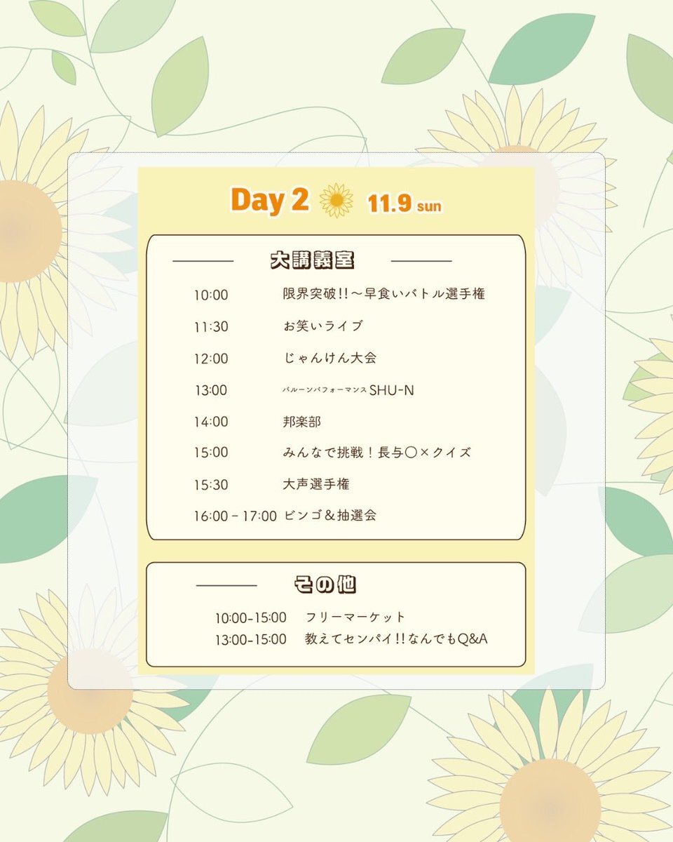 【カウントダウン🌞】 学園祭まであと2日!! 明日はついに前日準備🔥 今年も多くのサークル・団体が出店・出演・展示に参加します✨️ 学生の個性と活気あふれる2日間をお楽しみに🌻 #SUNFESTA #学園祭 #長崎県立大学シーボルト校 #カウントダウン #長崎県立大学 pic.x.com/yelgiBr8sf