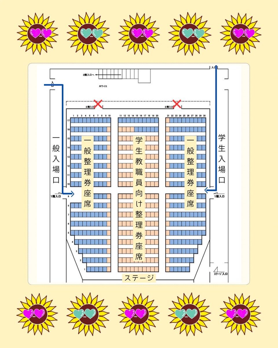 #梶裕貴 さんトークショー座席配置図🗺️】 (座席) ・学生、教職員向け整理券→オレンジ色🧡 ・一般整理券→青色💙 ⚠️学生枠は赤いテープで仕切っているため、一般の方は中に座らないようにお気を付けください。 入場方法は画像をご確認ください👀 #学園祭 #長崎県立大学シーボルト校 #SUNFESTA pic.x.com/5qQWj0j1Kl