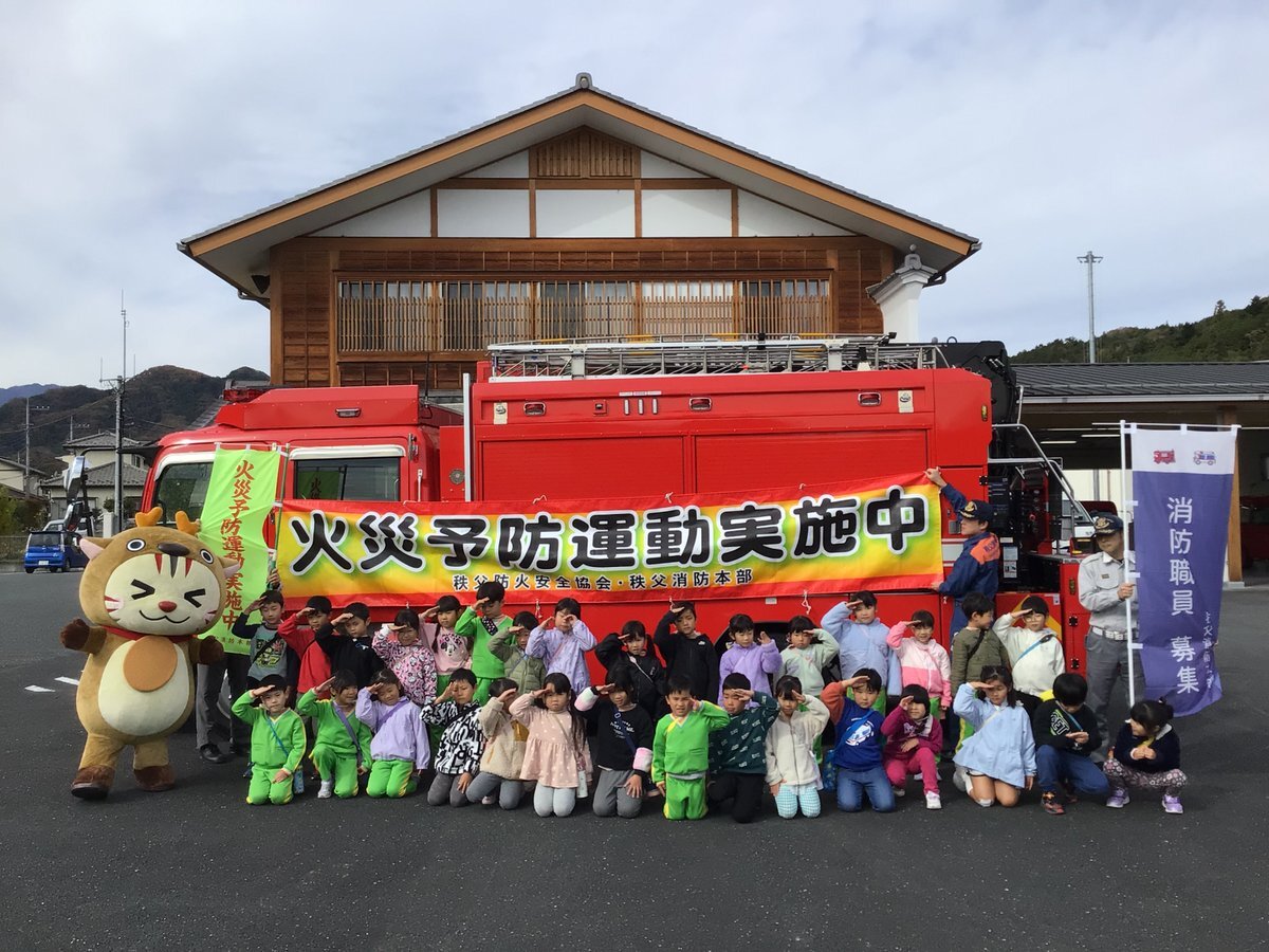 秋の火災予防啓発イベントを実施しました! 11月11日、秩父消防署西分署におがのこども園のこどもたちを招待し、火災予防啓発イベントを行いました。 皆様も火の取り扱いには、十分ご注意ください。 #秩父広域市町村圏組合 #秩父市 #横瀬町 #皆野町 #長瀞町 #小鹿野町 #秩父消防本部 #火災予防 pic.x.com/BBjenAPlXC