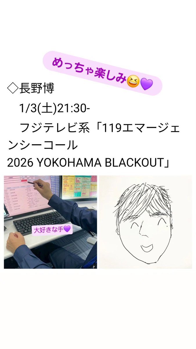 やはり #長野博 くんだったのですね💜 #119エマージェンシーコール は見ていたドラマだったのでお正月からめちゃくちゃ嬉しい😍楽しみ✨あのユニフォームを着るってことかな?似合いそう💜 x.com/drama119_cx/st…