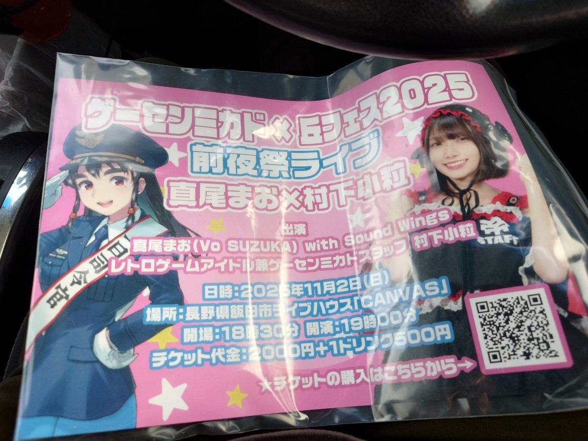 そして #丘フェス前夜祭 のフライヤーも無事入手!置いてある場所を教えてくれた店員さんありがとう! 結局寄れたAPINAは飯田店だけだったw #長野放浪記 pic.x.com/qFpajK1xDa