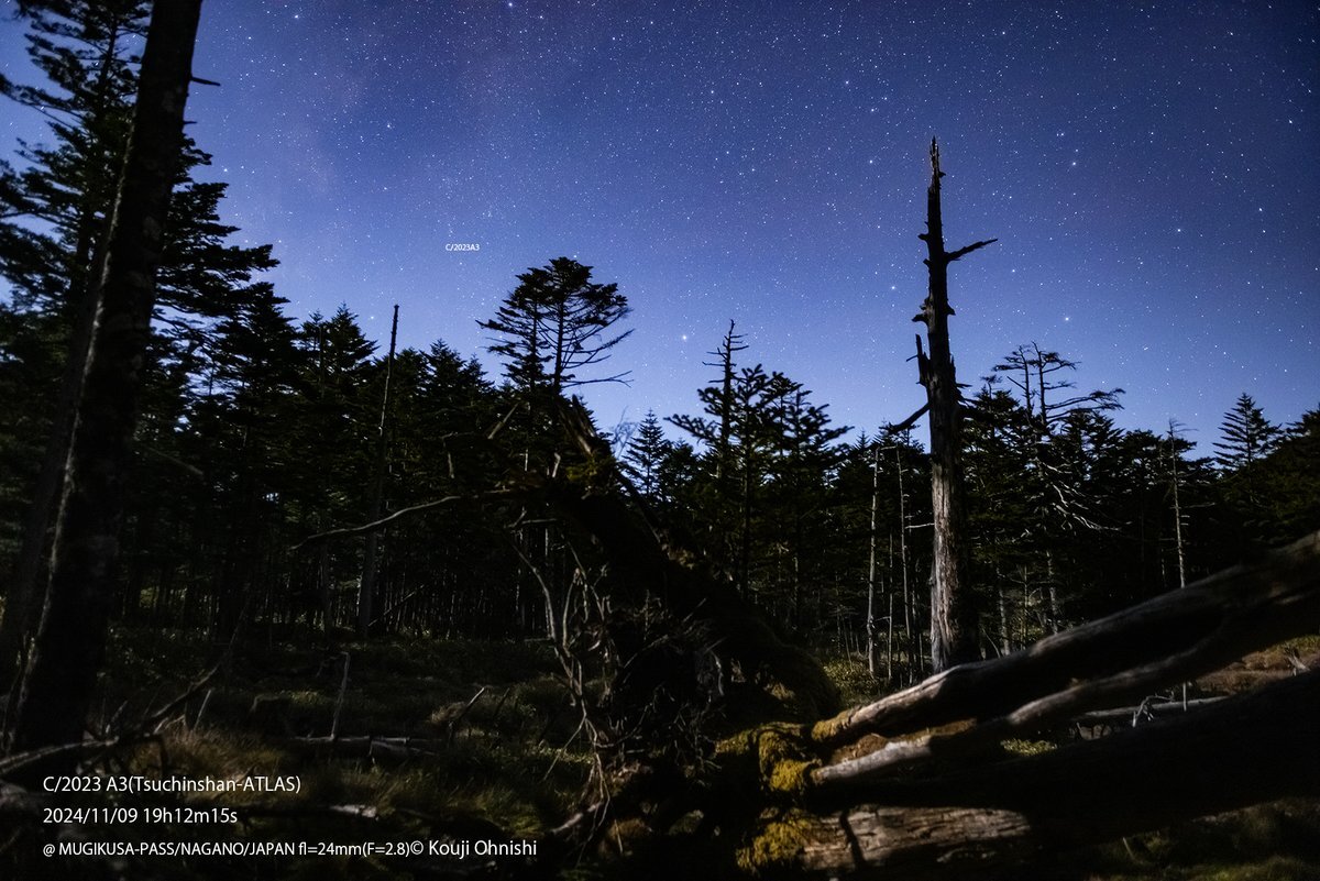 #今日の星景写真 2025年11月10日 「森の中の紫金山・アトラス彗星」 撮影:2024/11/09 #佐久穂町 昨年、大彗星となった #紫金山アトラス彗星、 天の川と重なって、見つけにくくなったが、 彗星の姿がわかるだろうか? はるか太陽系の向こうへと帰ってゆく途上の姿だ。 C/2023 A3 #長野県は宇宙県 pic.x.com/SNhDuaI2hV