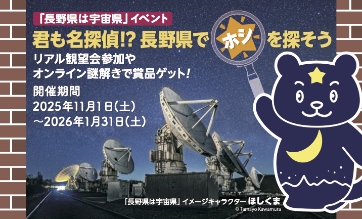 「#長野県は宇宙県」イベント「君も名探偵!?長野県でホシを探そう!」の本日のイベントです。 uchuuken.jpn.org/2025tantei/ind… さて、今日はどのようなホシを探すことになるのかな? x.com/rxf06715/statu…