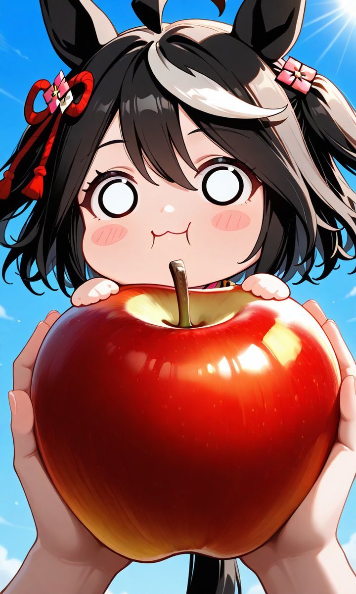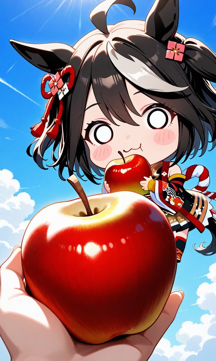 お目々ぱっちりキタサン… 長野県りんごの日… 美味しそうなりんごだね? 一緒に食べる?イイね👍️ じゃあ一緒に食べようか…。 えっ?これも食べるの?私のは… #AIart #キタサンブラック #お目々ぱっちりキタサン #長野県りんごの日 #ウマ娘プリティーダービー pic.x.com/a4hdrphztT