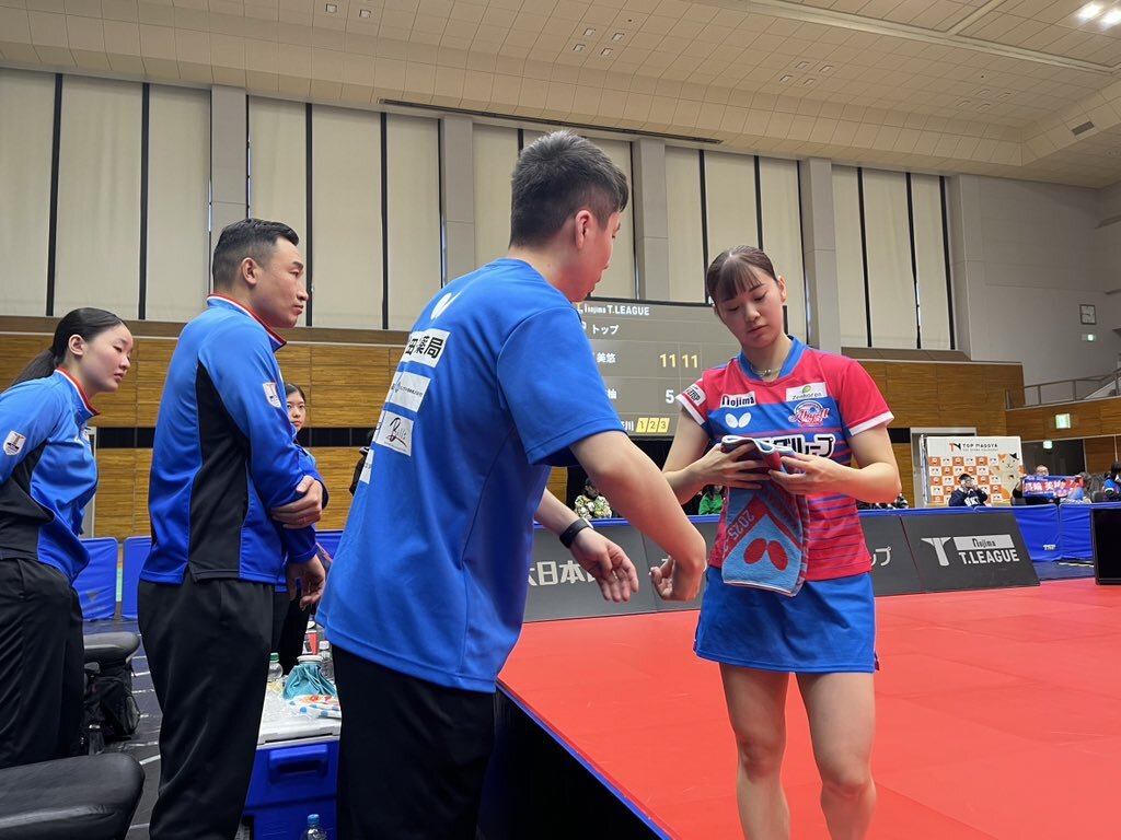 #Tリーグ #木下アビエル神奈川 vs 九州カリーナ 代々木第二体育館 2025/10/18現地撮影☺️ タイム中 ながみゆに意見を伝えるつゆりん #長﨑美柚 #ジュユリン #朱雨玲 pic.x.com/72VqmnW25w