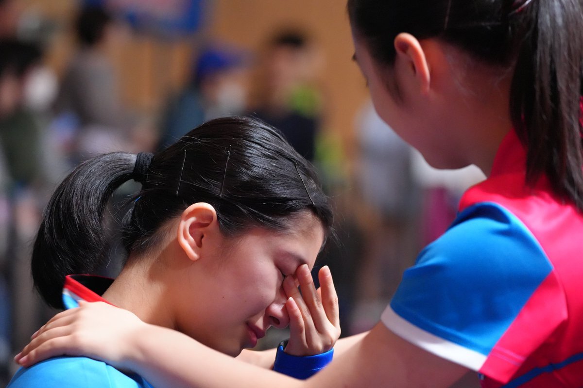 #櫻井花 選手 2025年11月9日@カルッツかわさき 対横井咲桜選手戦後 何もさせてもらえなかった…。悔しかったよな…😢 その😢悔し涙😢が君を強くする💪 #長﨑美柚 ねえさんに #瓜生日咲 選手、 いい仲間に恵まれて、#木下アビエル神奈川 って ホント、いい🏓チーム🏓 明日に期待👍 #Tリーグ #卓球🏓 pic.x.com/h5lLFojOPU