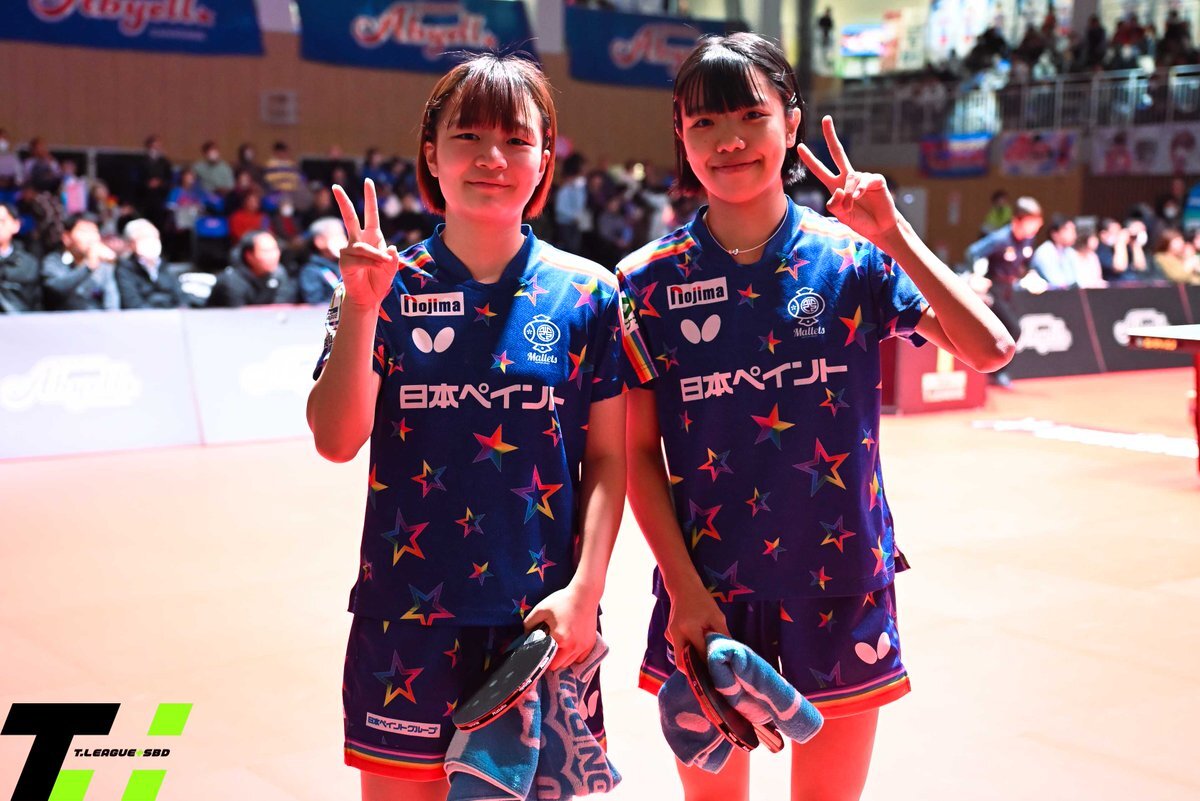 Look back on the match ‼️ 11月9日。#木下アビエル神奈川 は #日本ペイントマレッツ と対戦。 1番に行われたダブルスでは 横井咲桜/青木咲智ペア(日本ペイントマレッツ)が、長﨑美柚/岡田琴菜ペアに勝利し、先取点をあげました。 @TLEAGUE_PR @Abyell_Kanagawa @NPHD_Mallets #卓球 #Tリーグ
