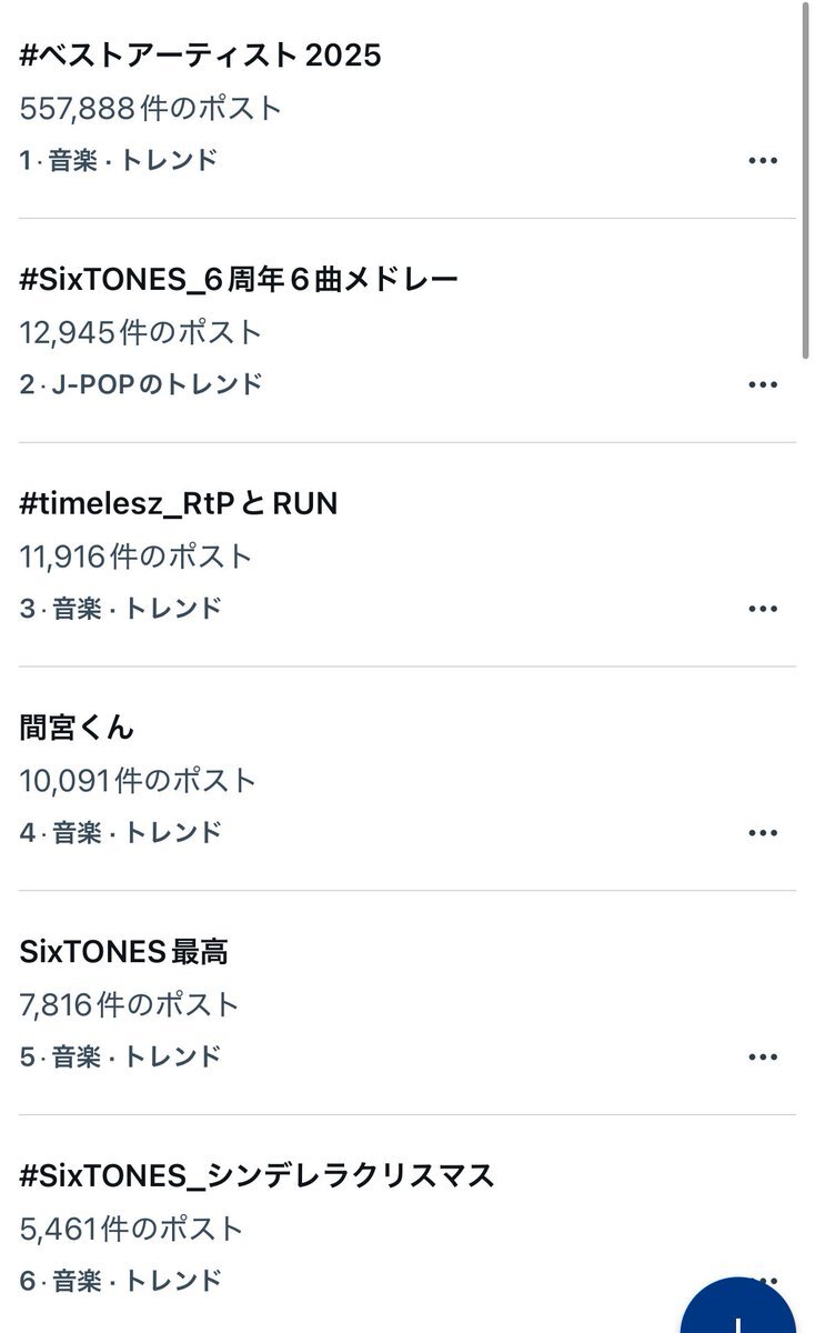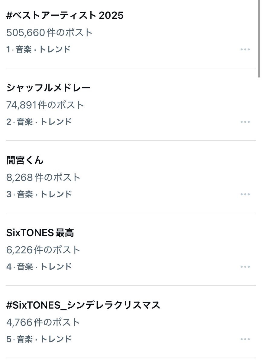 この流れでトレンド入りするの、誰よりも(?)SixTONESなのは間宮くんなのではないか、、、 #ベストアーティスト2025 #SixTONES #間宮くん
