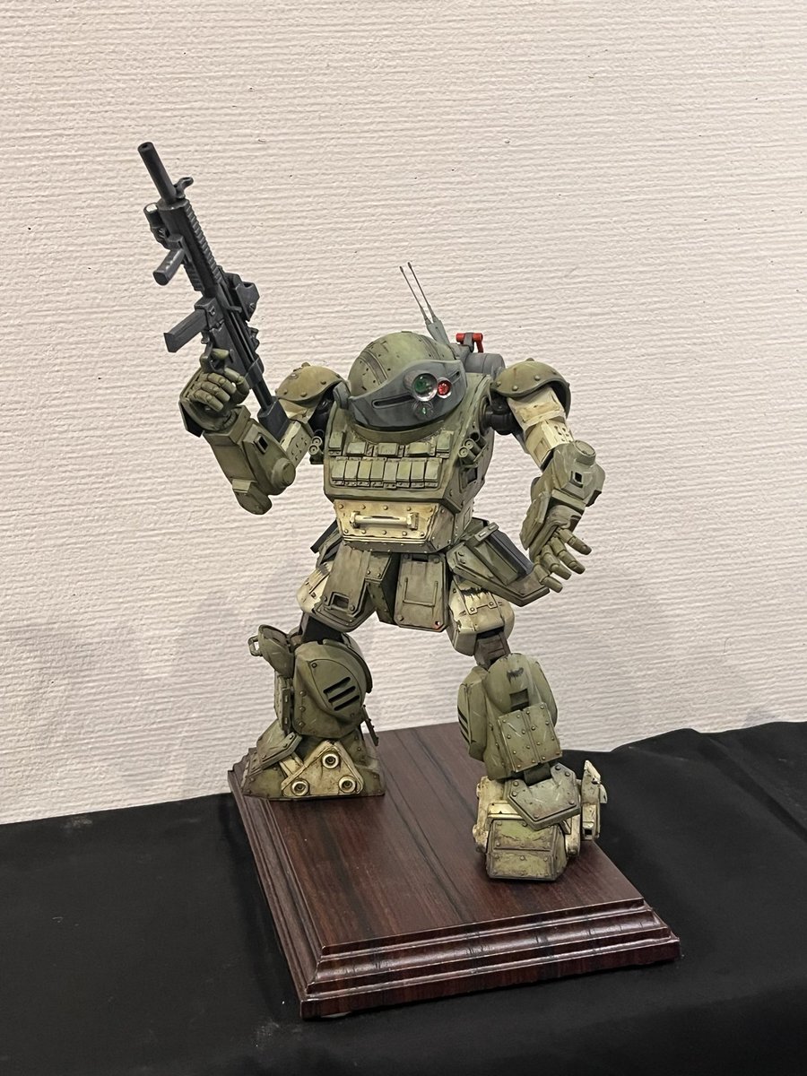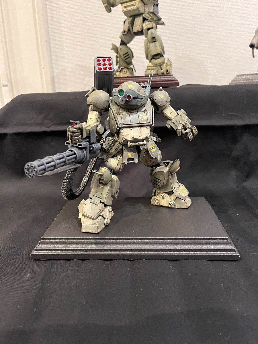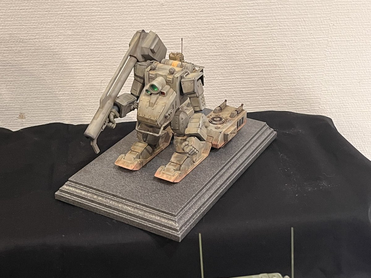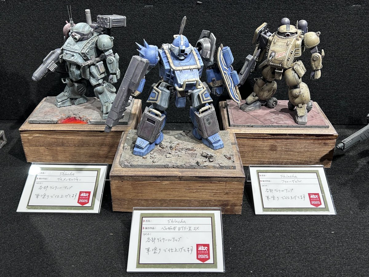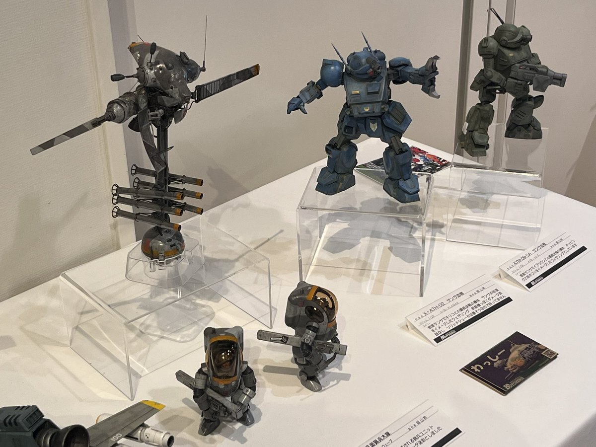 遅ればせながら。。 東京北千住マルイ7F で開催中の #ボトムズ総合模型演習 に、 6作品を展示させてもらってます! 一般枠での参加で、スミの方に展示してますので、観ていただけると嬉しいです! #筆塗り #間野四郎模型同好会 pic.x.com/a72dxJ78Mq