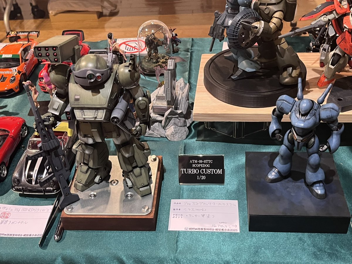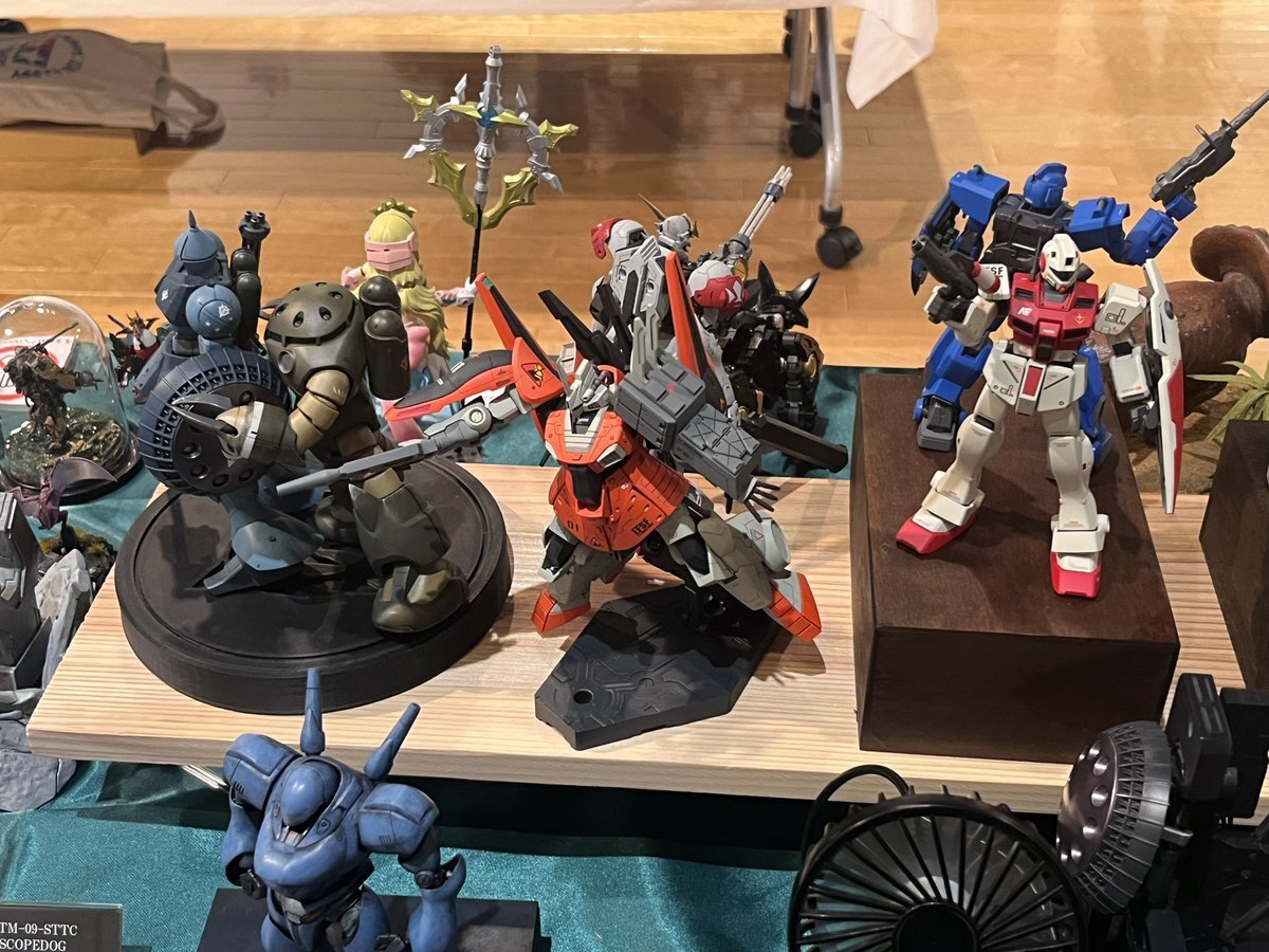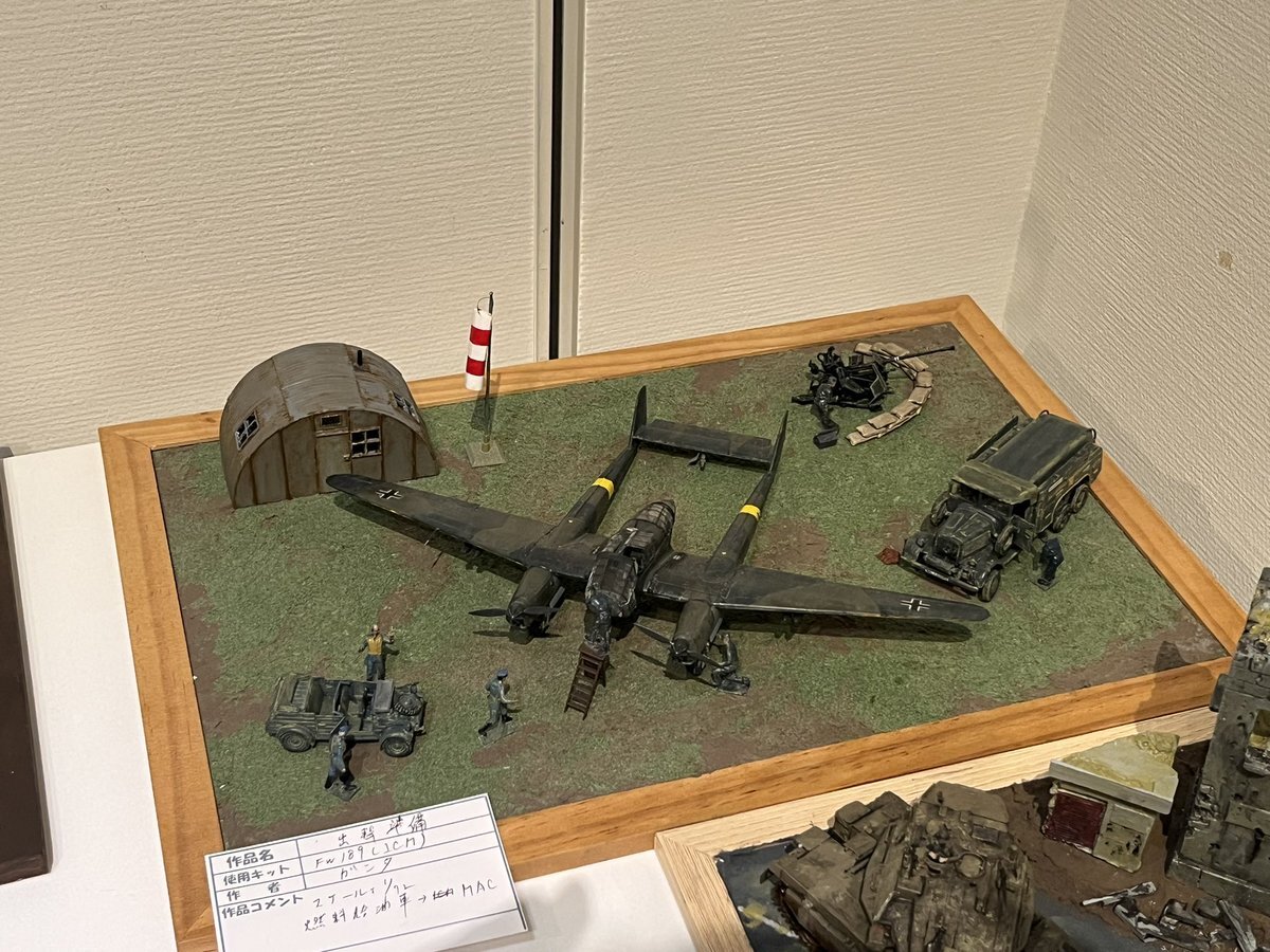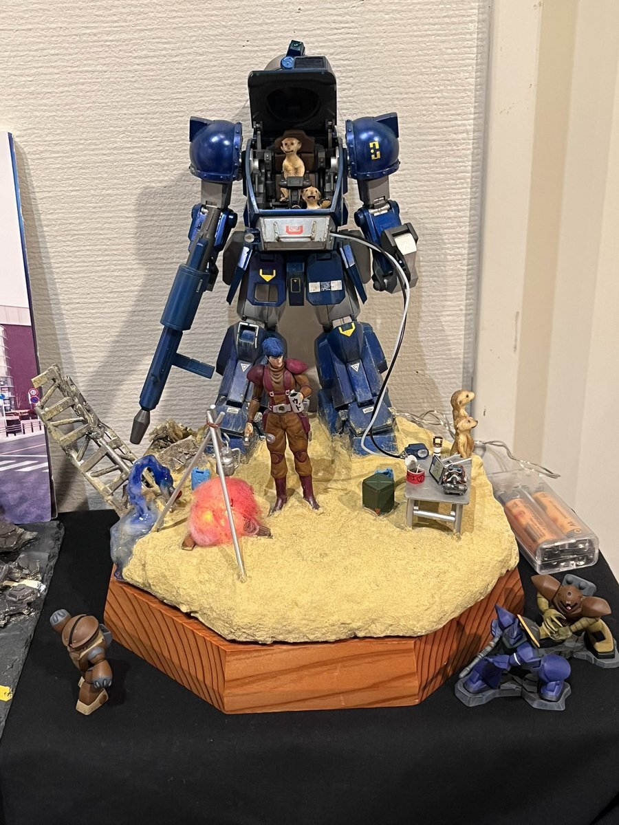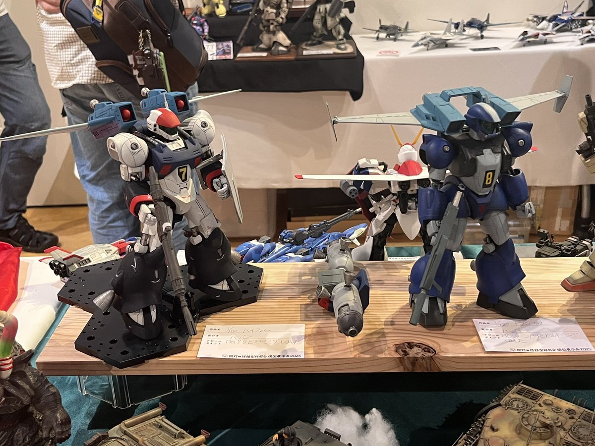 遅ればせながら。。 東京北千住マルイ7F で開催中の #ボトムズ総合模型演習 に、 6作品を展示させてもらってます! 一般枠での参加で、スミの方に展示してますので、観ていただけると嬉しいです! #筆塗り #間野四郎模型同好会 pic.x.com/a72dxJ78Mq