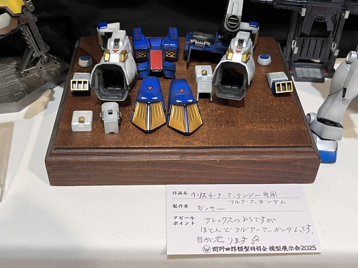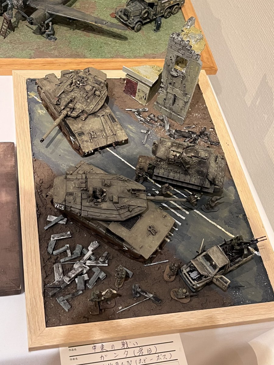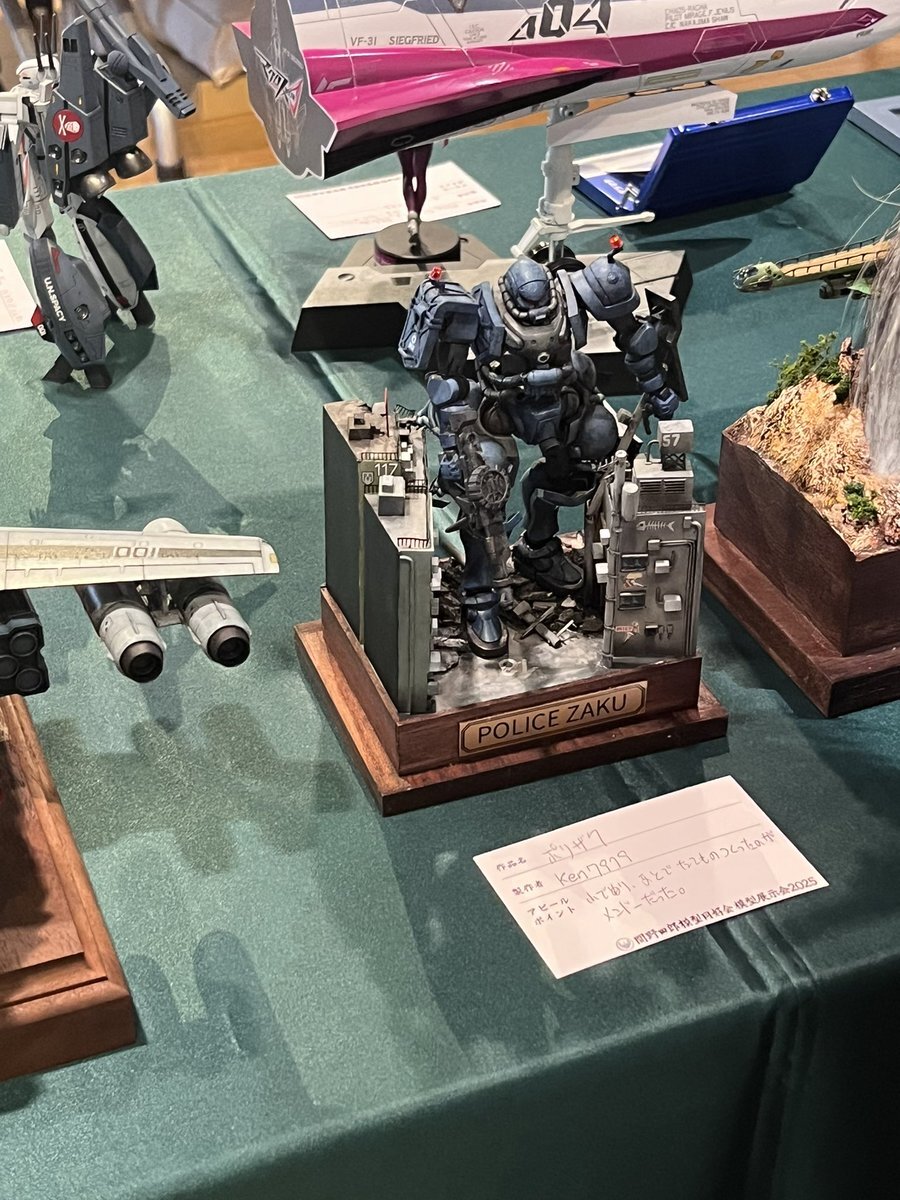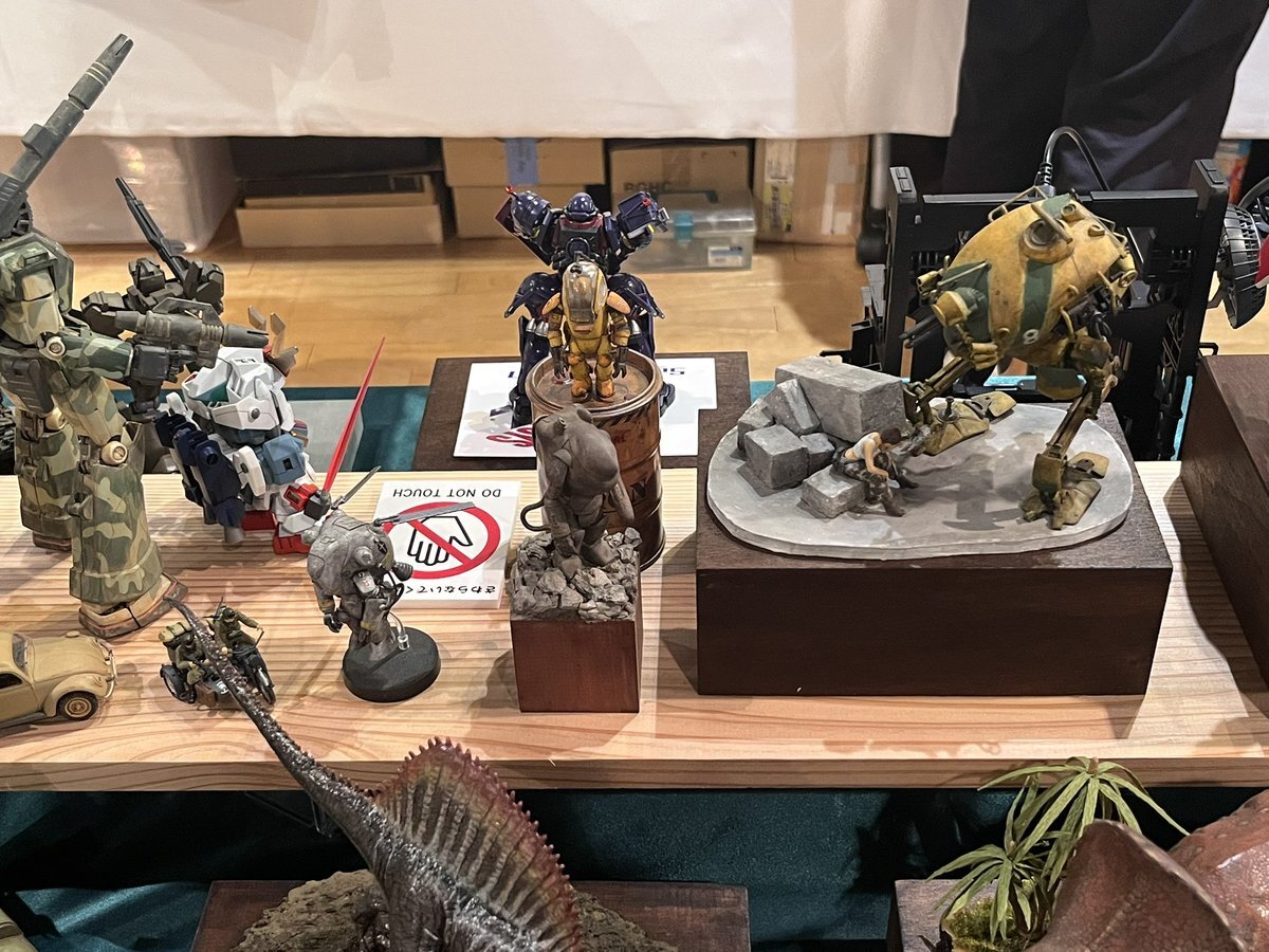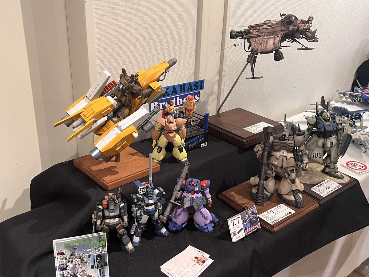 遅ればせながら。。 東京北千住マルイ7F で開催中の #ボトムズ総合模型演習 に、 6作品を展示させてもらってます! 一般枠での参加で、スミの方に展示してますので、観ていただけると嬉しいです! #筆塗り #間野四郎模型同好会 pic.x.com/a72dxJ78Mq