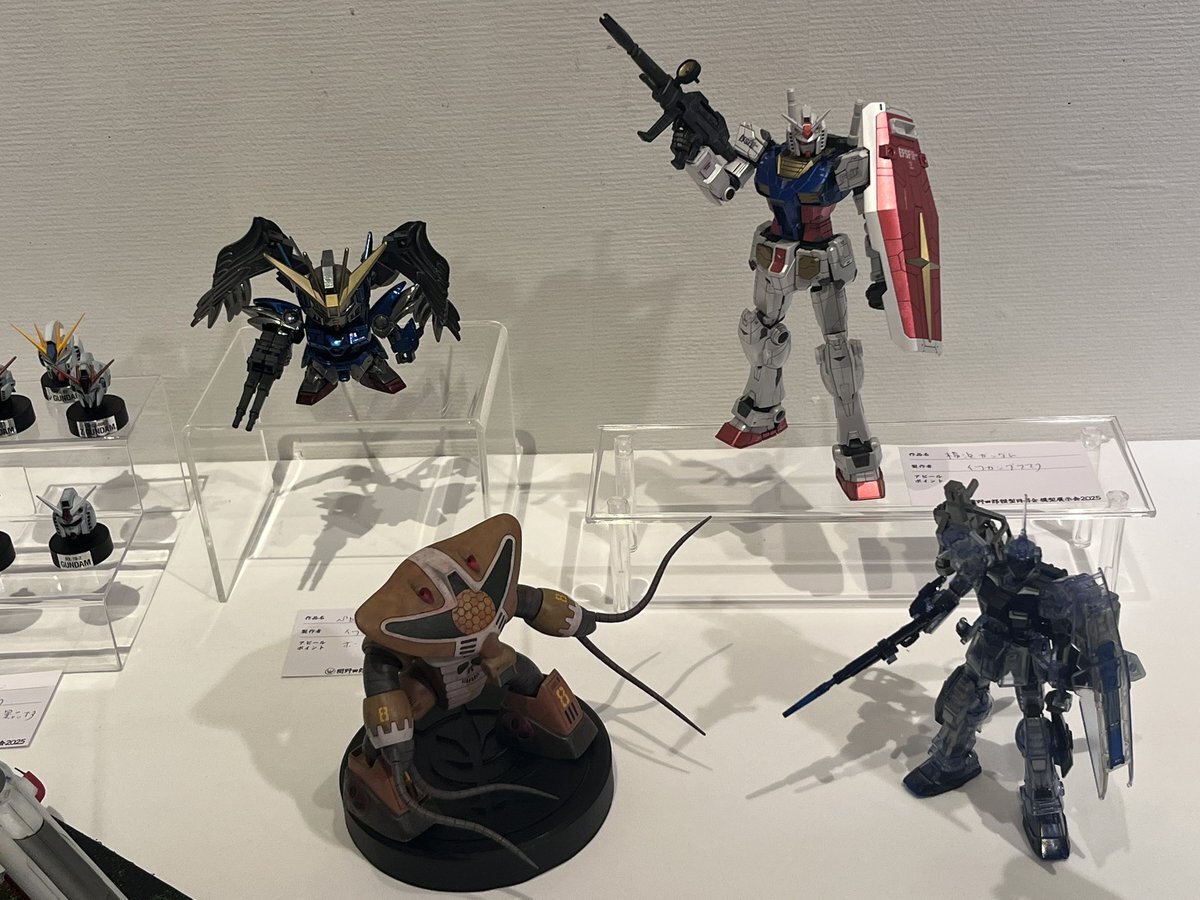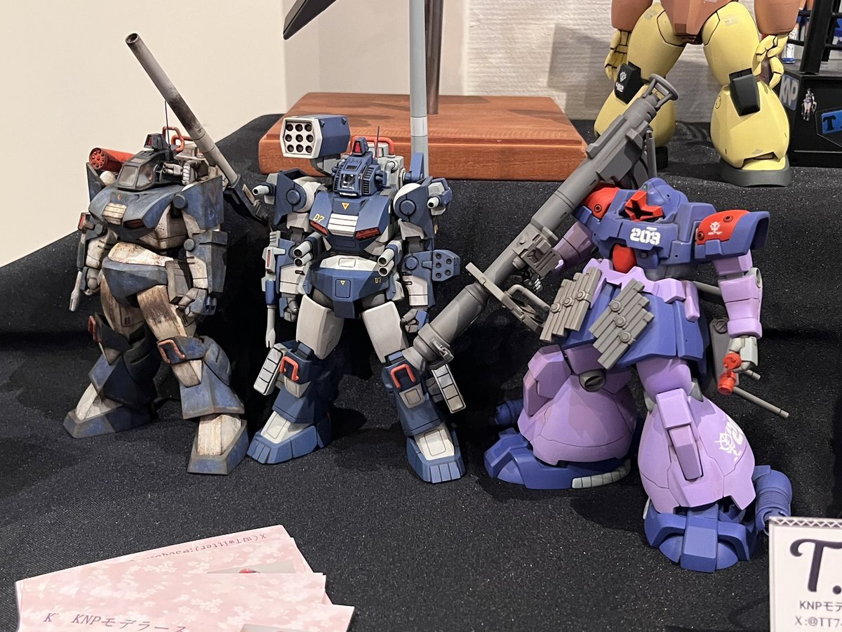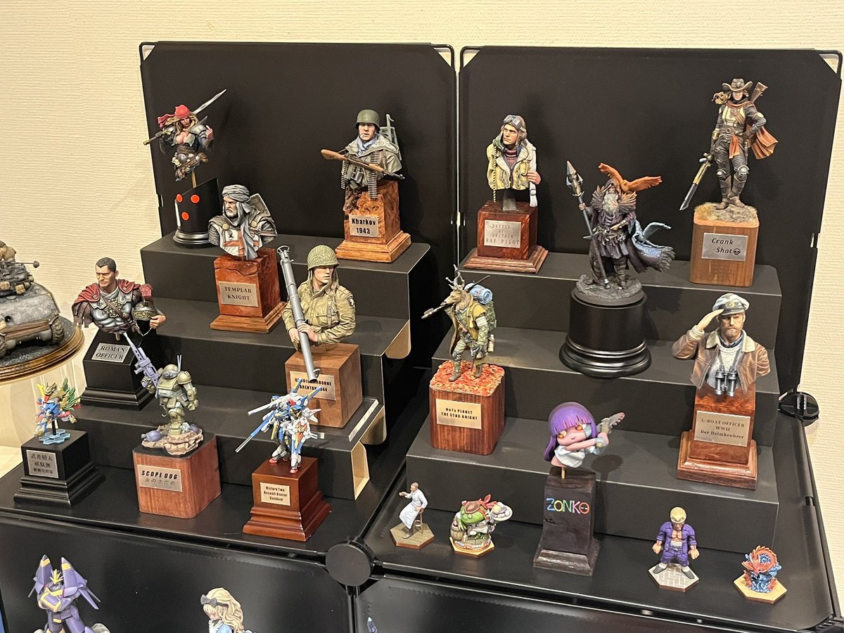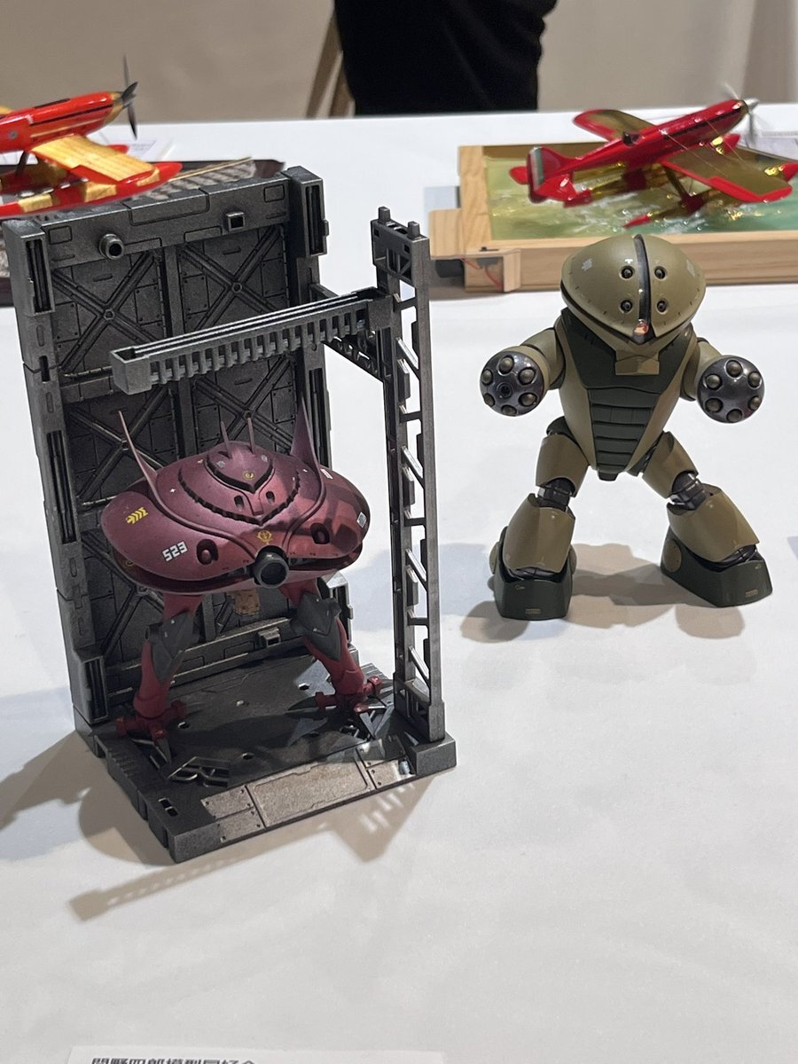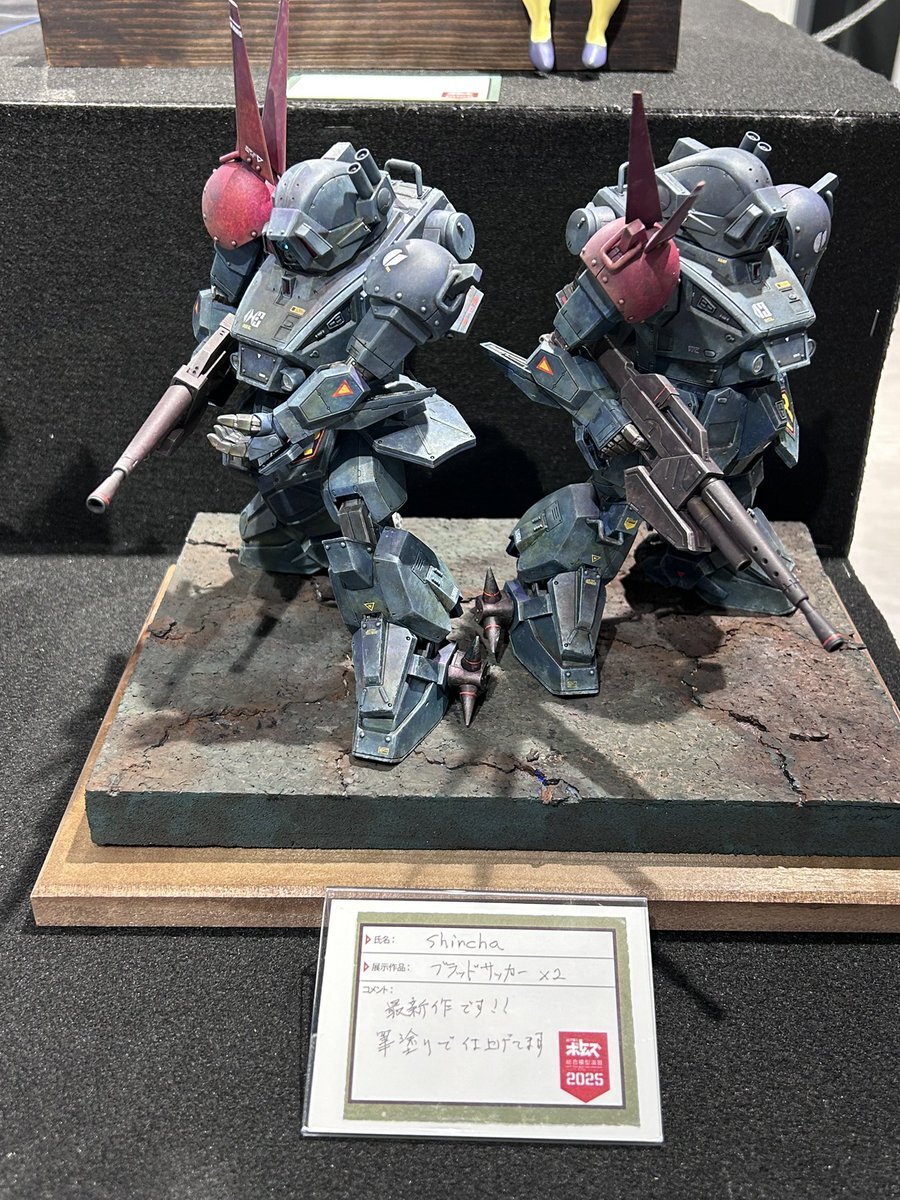 遅ればせながら。。 東京北千住マルイ7F で開催中の #ボトムズ総合模型演習 に、 6作品を展示させてもらってます! 一般枠での参加で、スミの方に展示してますので、観ていただけると嬉しいです! #筆塗り #間野四郎模型同好会 pic.x.com/a72dxJ78Mq