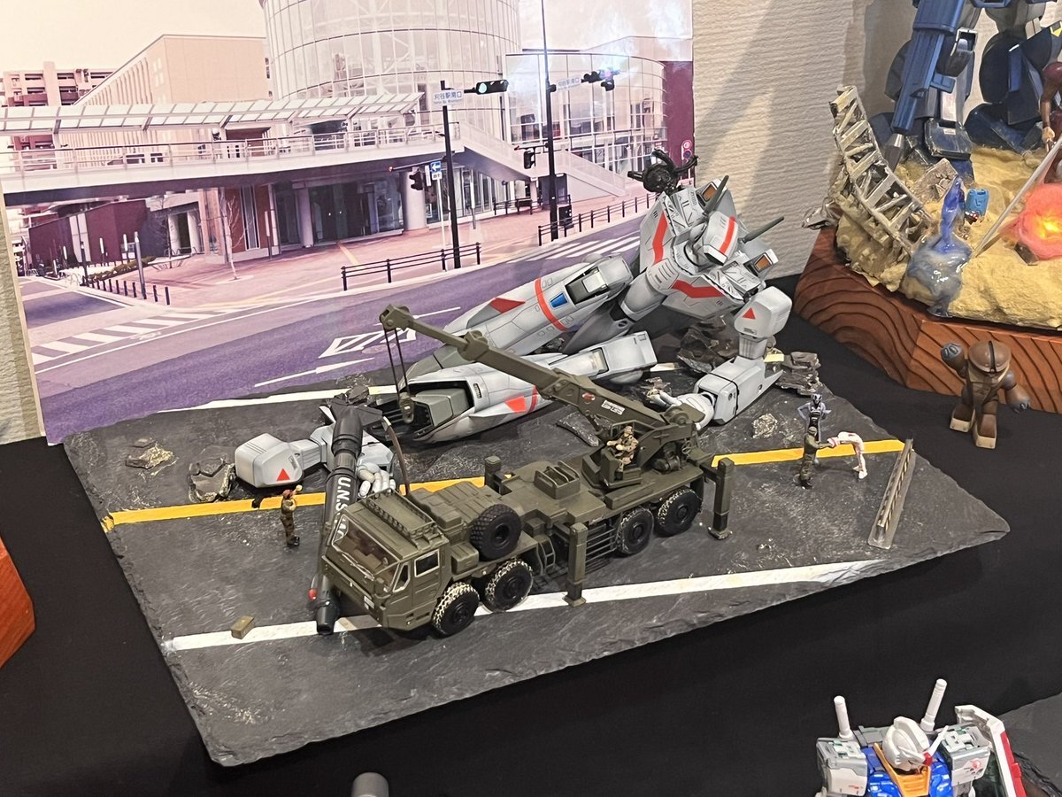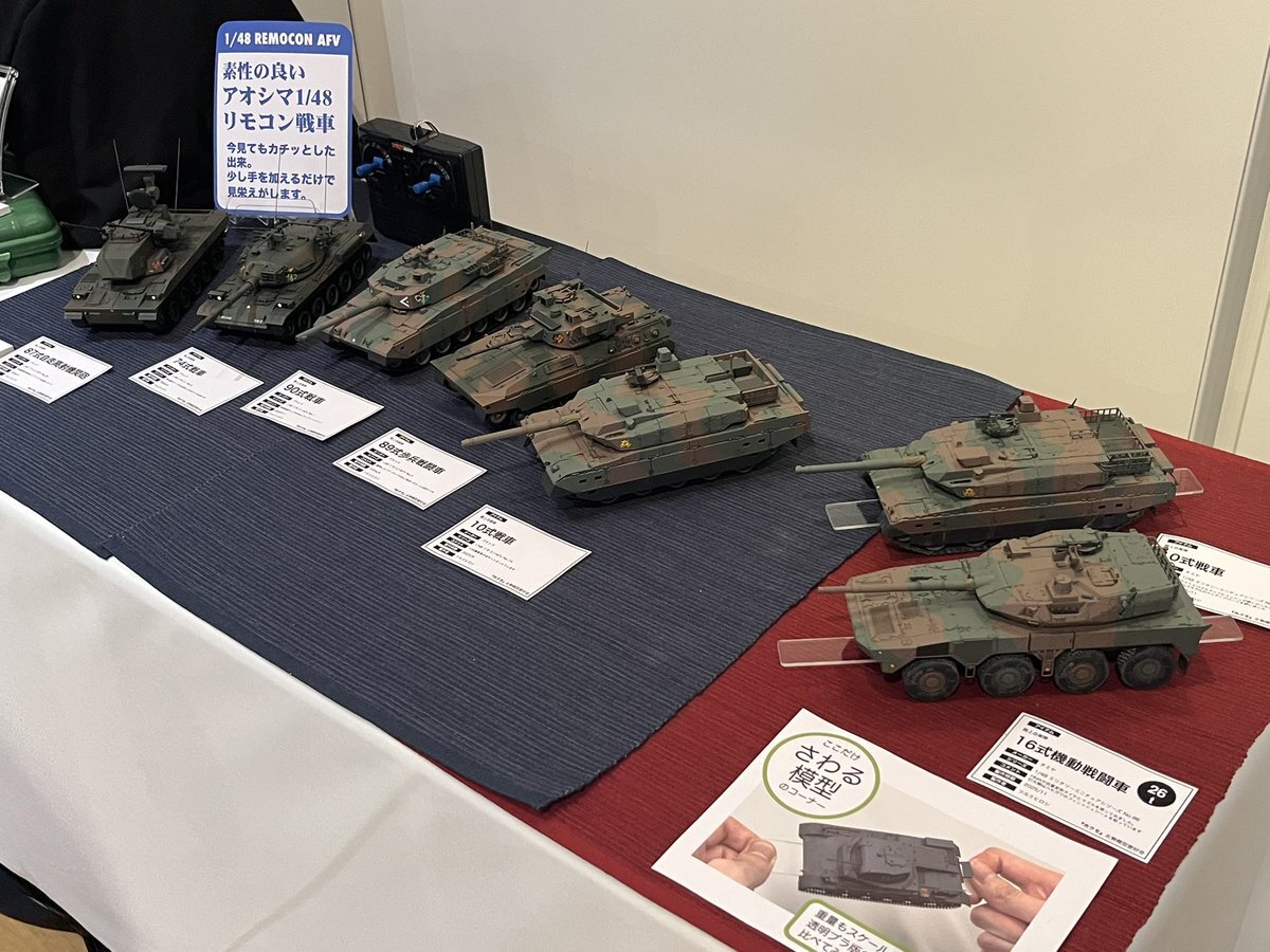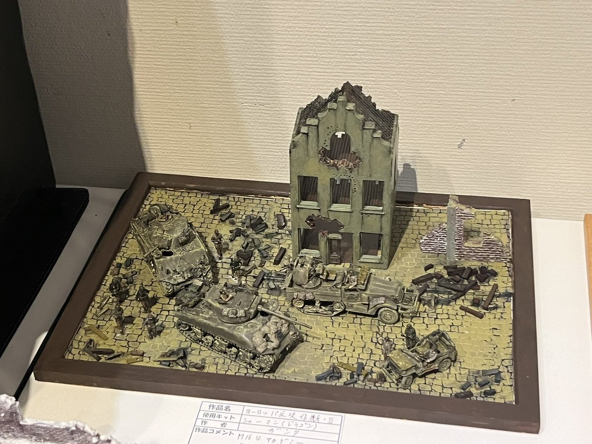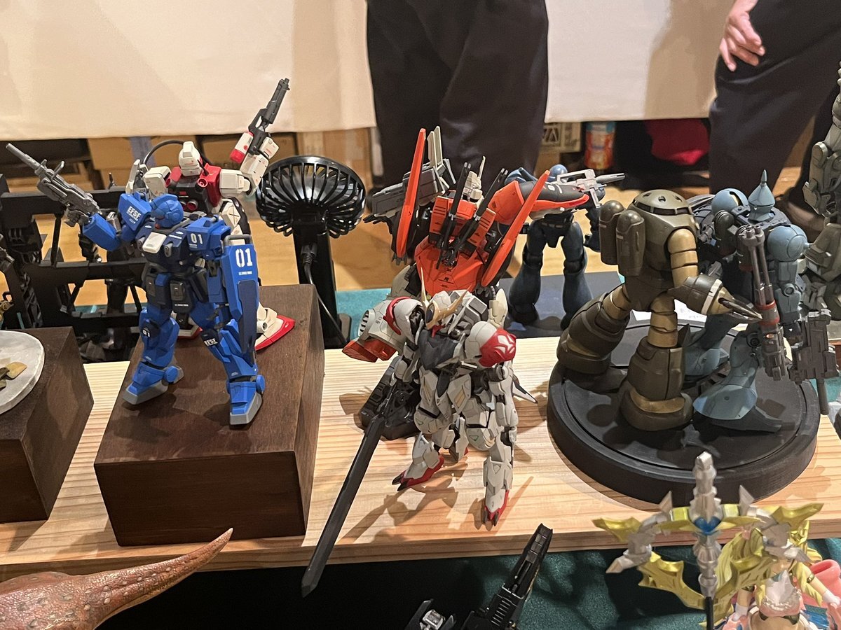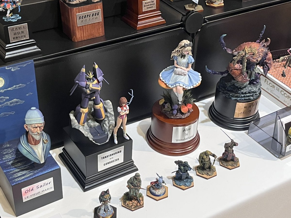 遅ればせながら。。 東京北千住マルイ7F で開催中の #ボトムズ総合模型演習 に、 6作品を展示させてもらってます! 一般枠での参加で、スミの方に展示してますので、観ていただけると嬉しいです! #筆塗り #間野四郎模型同好会 pic.x.com/a72dxJ78Mq