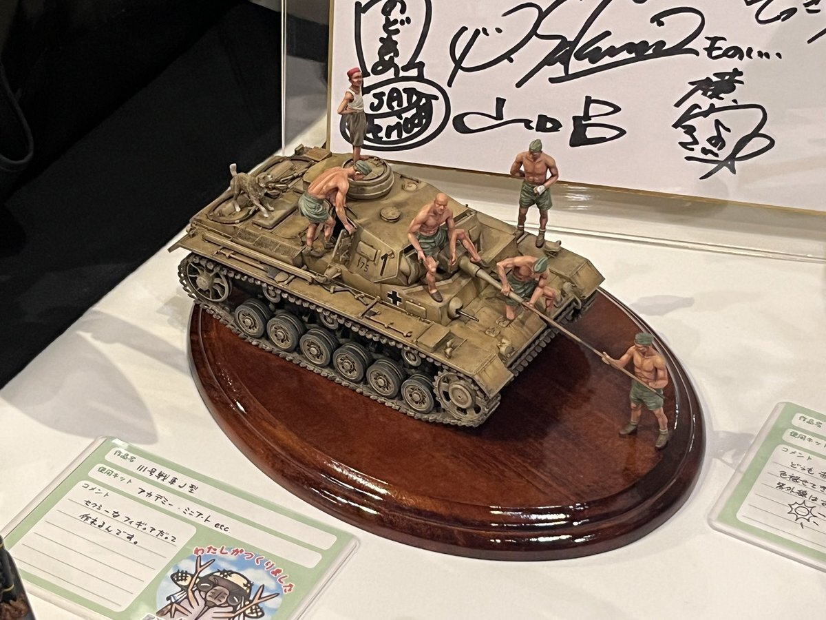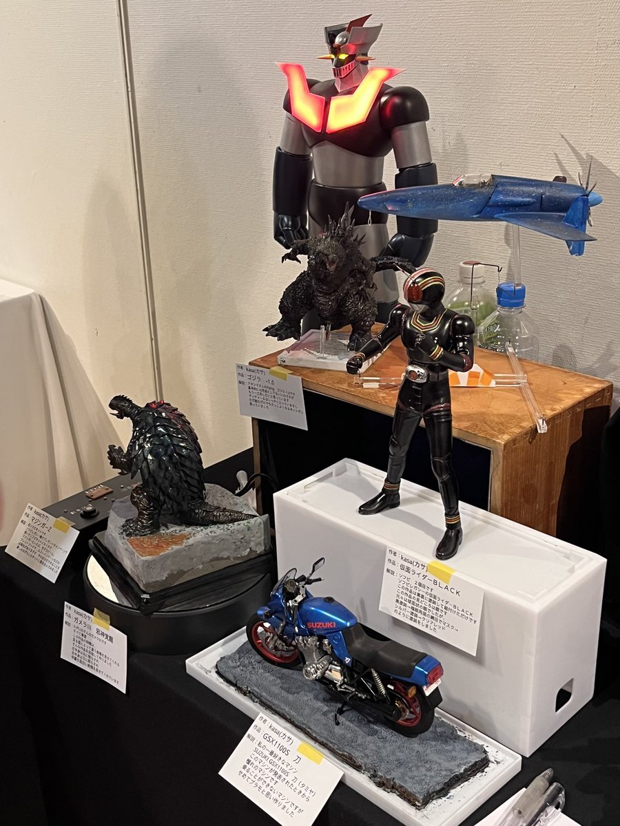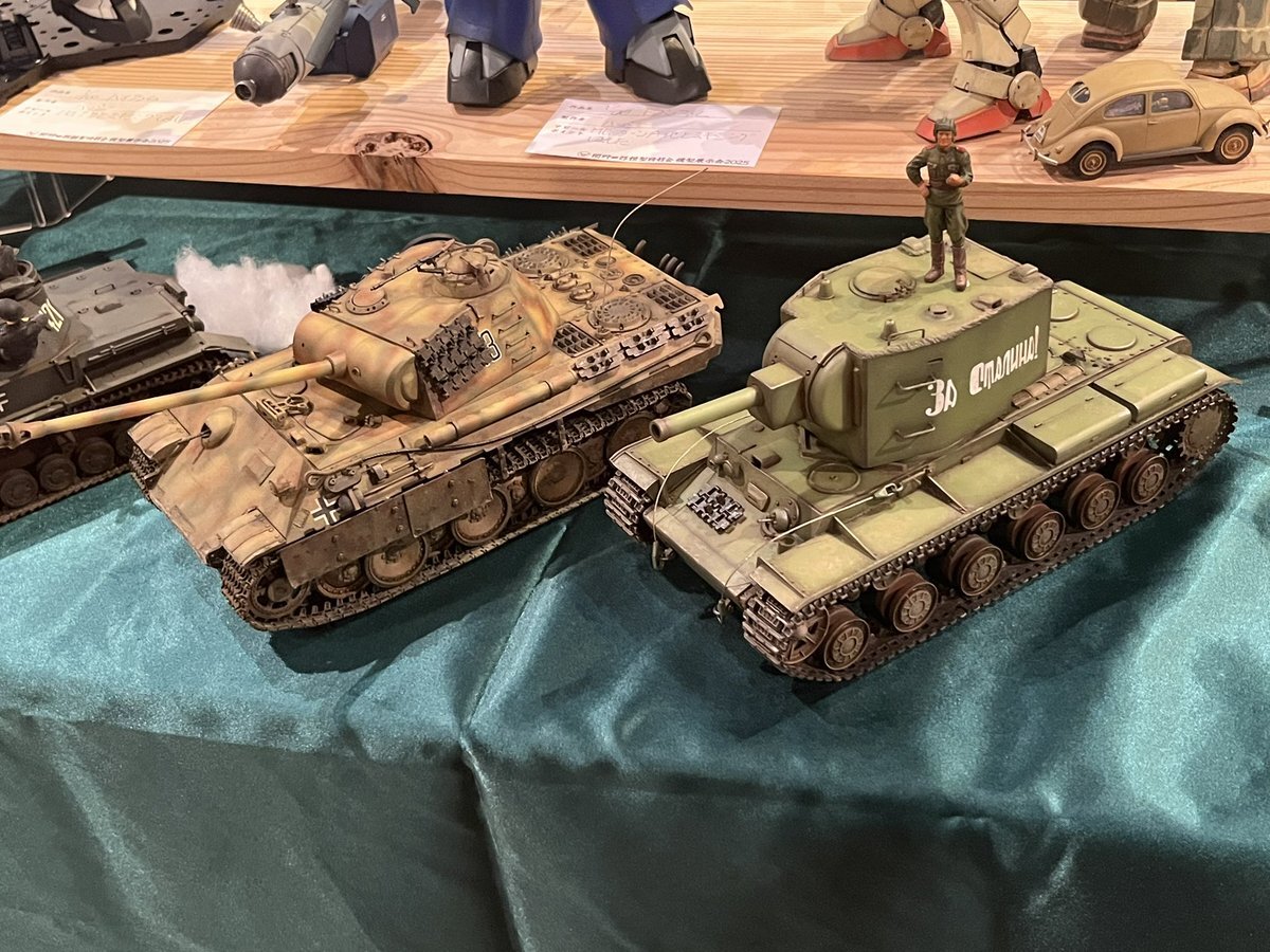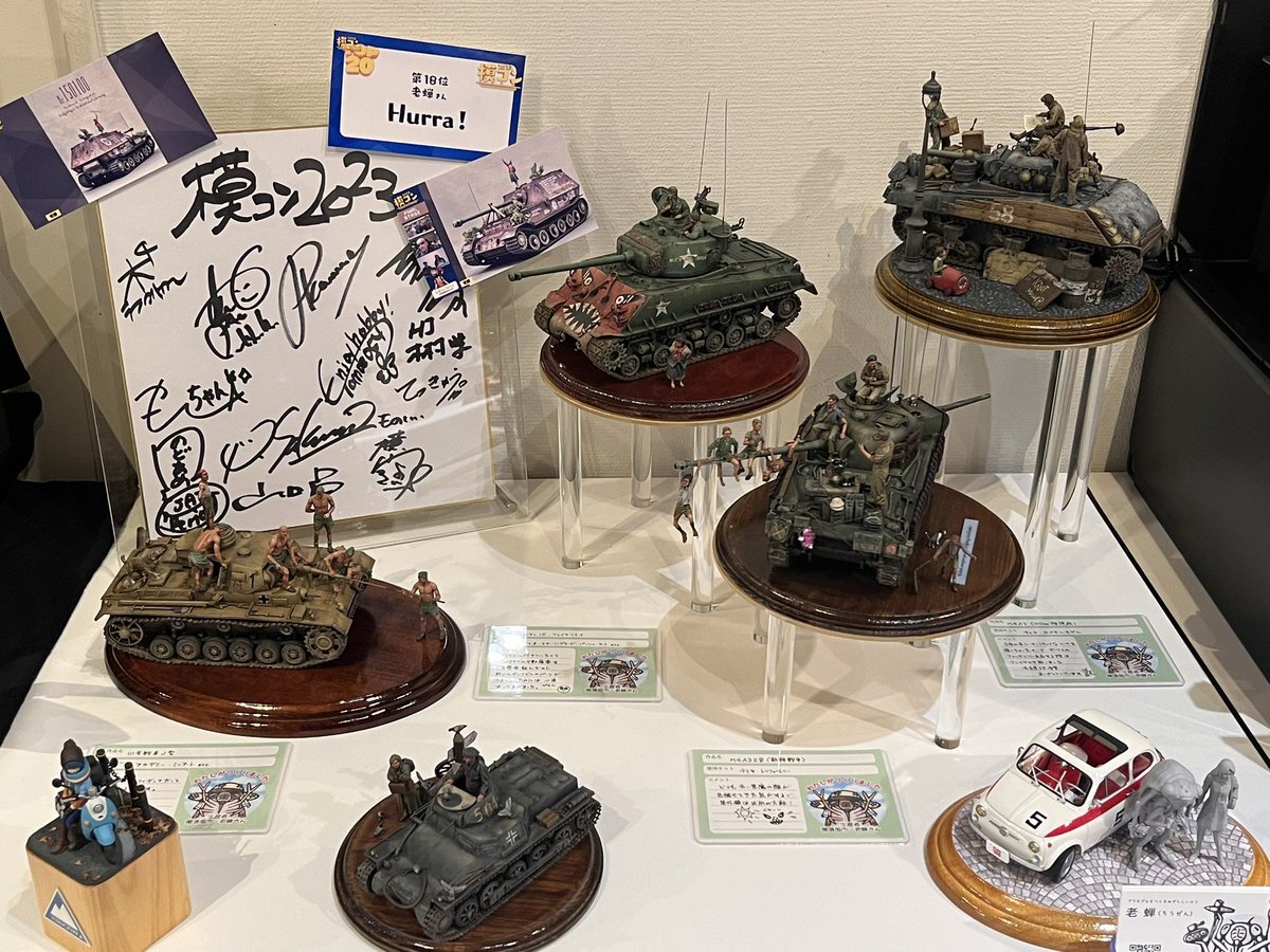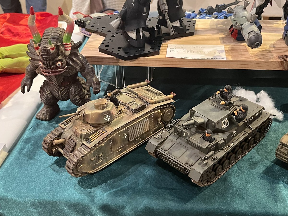 遅ればせながら。。 東京北千住マルイ7F で開催中の #ボトムズ総合模型演習 に、 6作品を展示させてもらってます! 一般枠での参加で、スミの方に展示してますので、観ていただけると嬉しいです! #筆塗り #間野四郎模型同好会 pic.x.com/a72dxJ78Mq