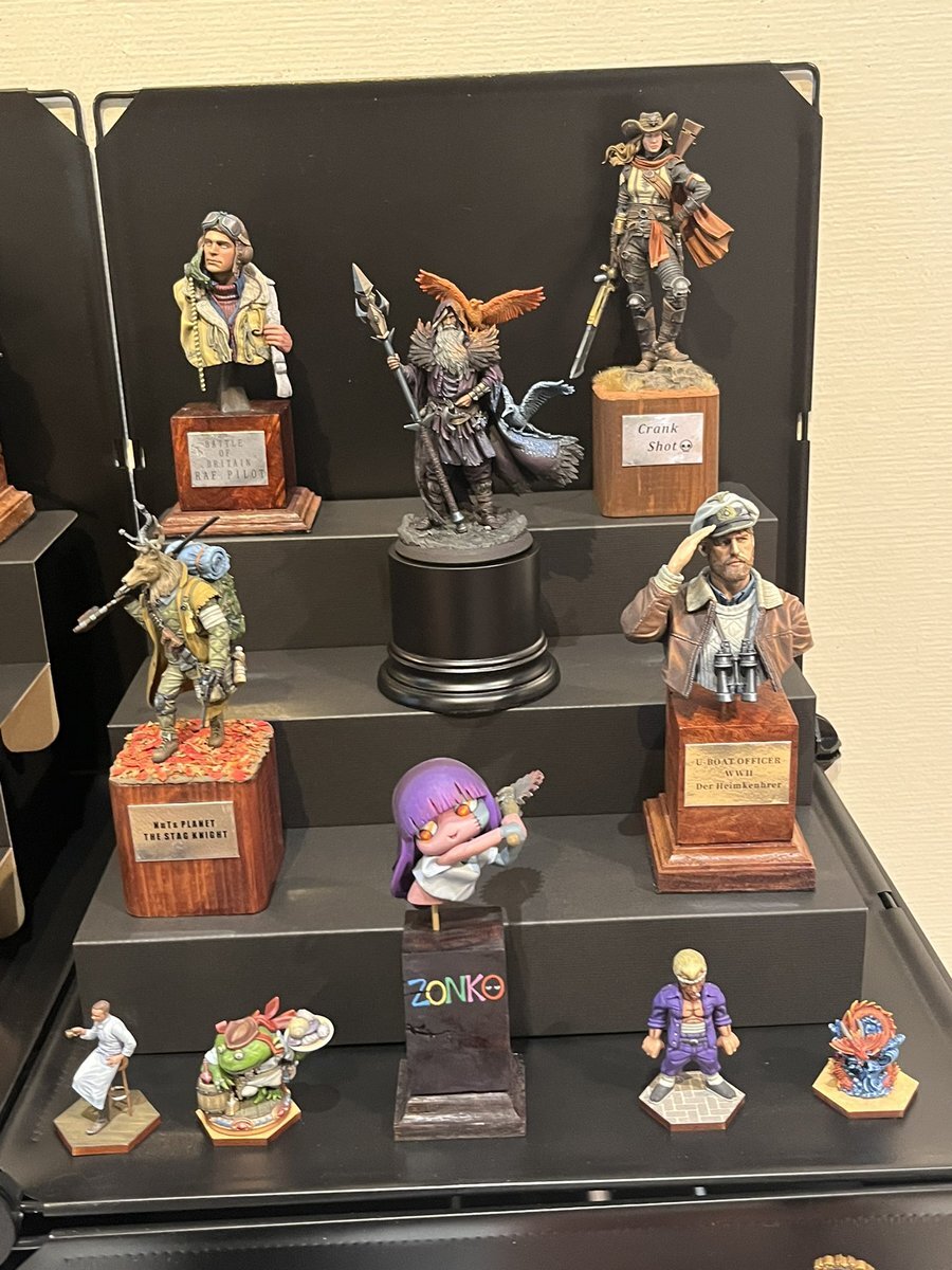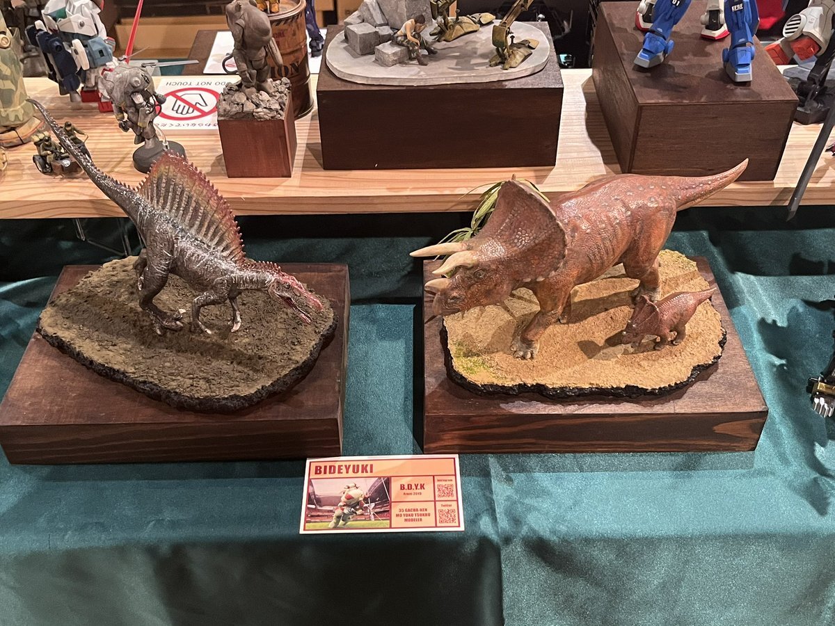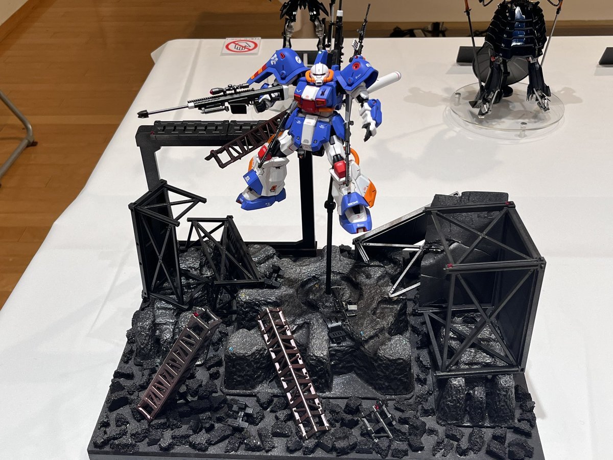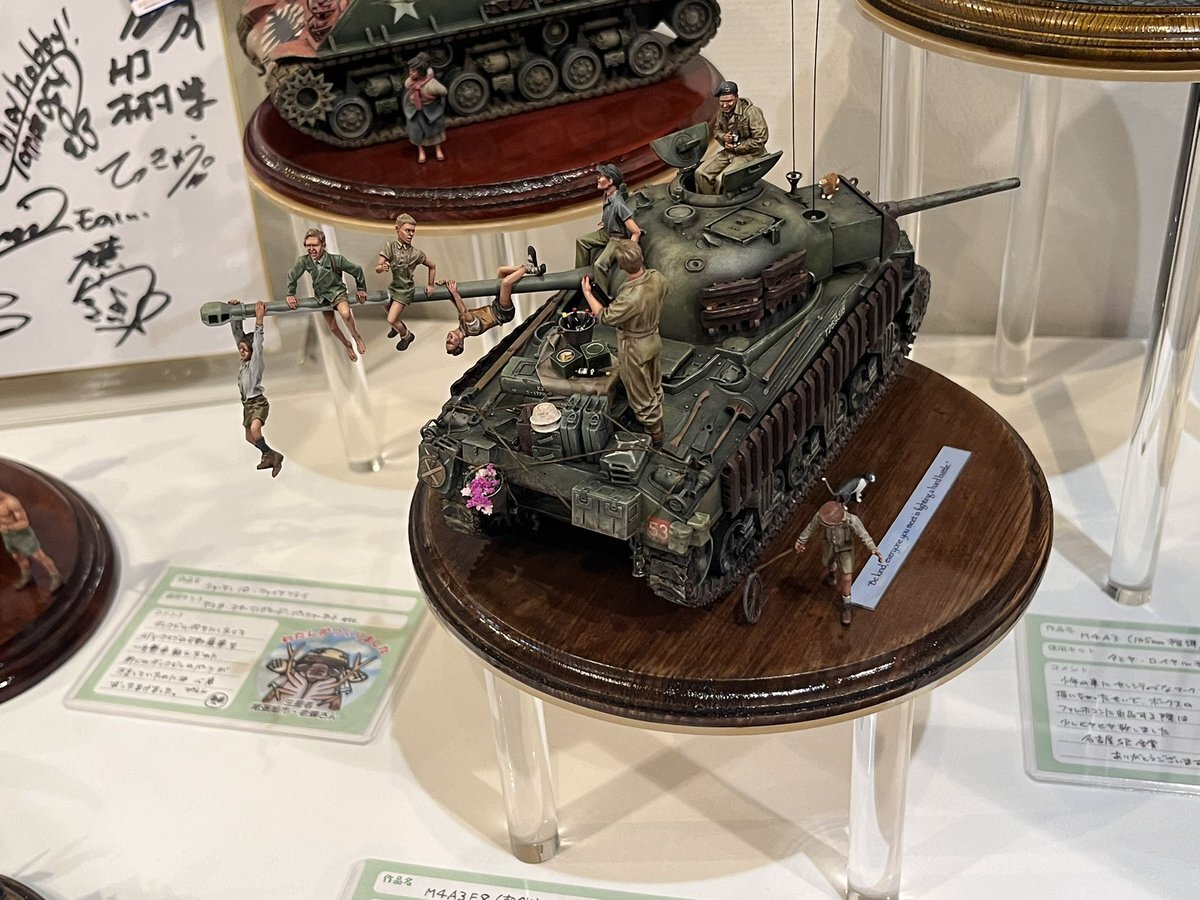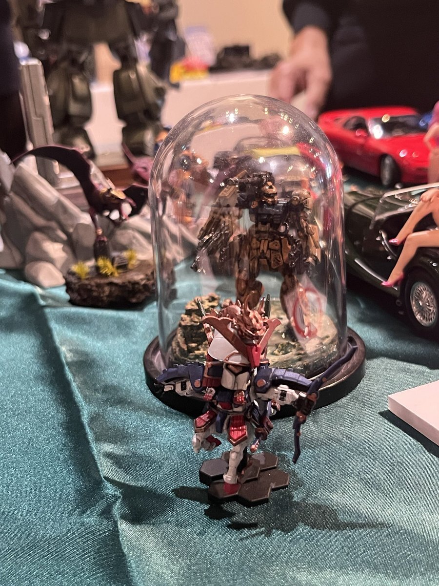 遅ればせながら。。 東京北千住マルイ7F で開催中の #ボトムズ総合模型演習 に、 6作品を展示させてもらってます! 一般枠での参加で、スミの方に展示してますので、観ていただけると嬉しいです! #筆塗り #間野四郎模型同好会 pic.x.com/a72dxJ78Mq