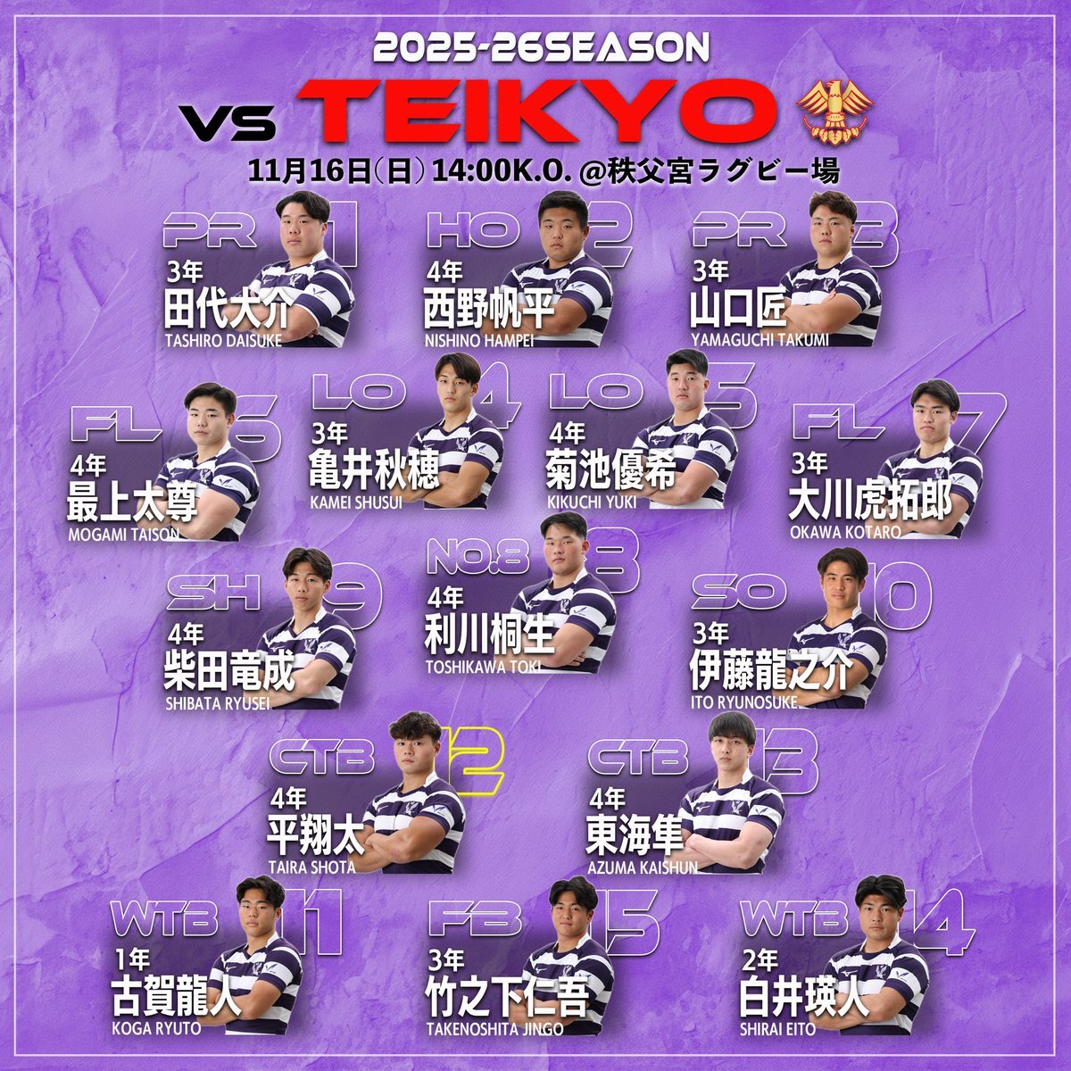 帝京大学戦メンバー発表❗️ #明治大学ラグビー部🏉 #前へ‼️ #関東大学対抗戦A🏉 pic.x.com/jWoZwWGX5v x.com/meijirugby/sta…