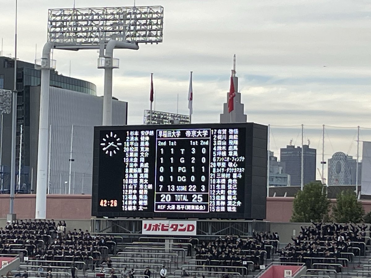 昨日はバックスタンド12ゲート前段にて観戦。 後段に大声でヤジるオヤジがいましたよね? 明治ファン??? 自宅で観戦しなさい。 #明治大学ラグビー部🏉 #前へ‼️ #関東大学対抗戦A🏉 #100回目の慶明戦🏉 pic.x.com/GRARFnCuCk