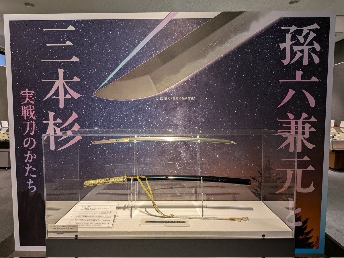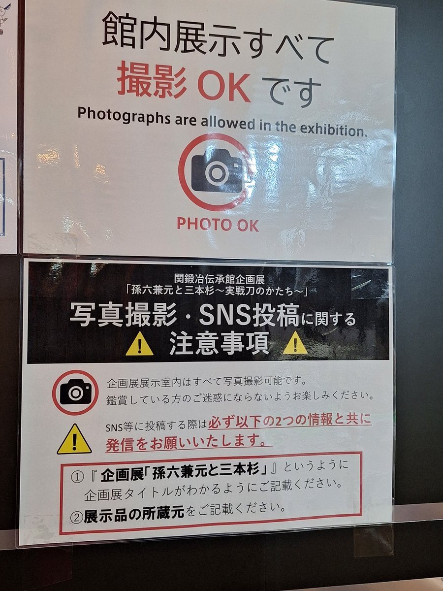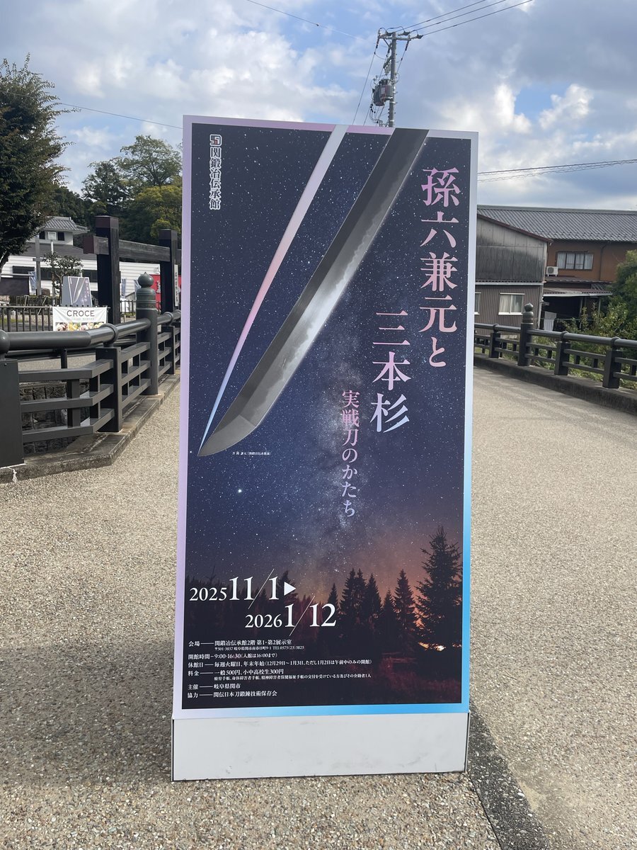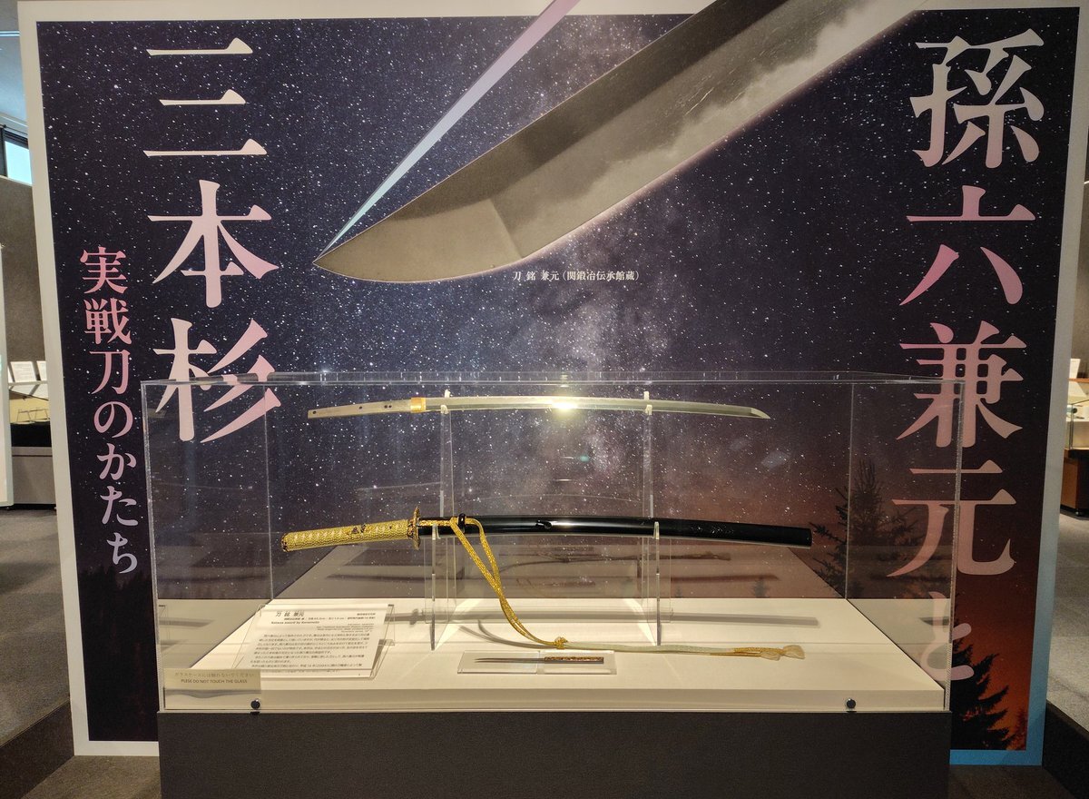先日 #関鍛冶伝承館 さんの 企画展「孫六兼元と三本杉」みてきた!!去年は予定日を会期末にしてたせいで天候に恵まれず行きそこねたので今回はもう初っ端で行ったけど、2階の企画展室では入り口から館所蔵の兼元がドドドンとお出迎えくださり圧倒されたわ笑 pic.x.com/8MLpHDoLcq