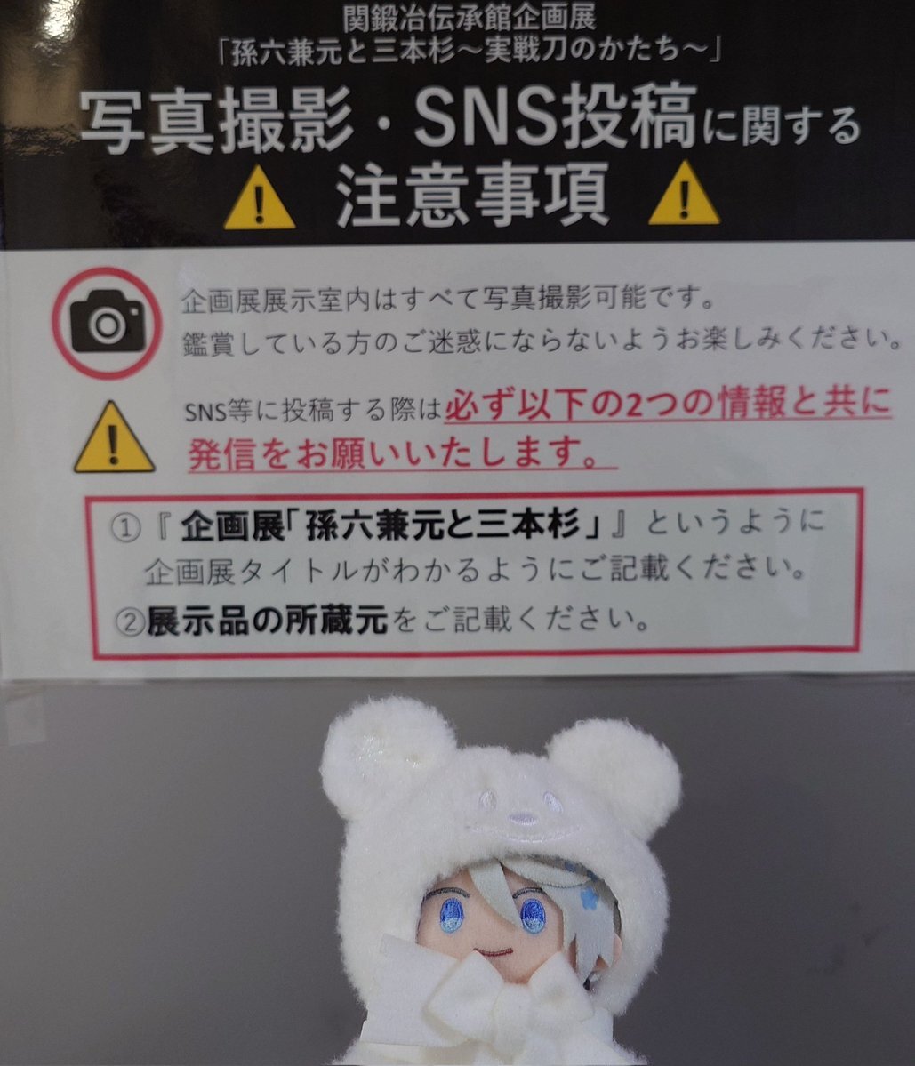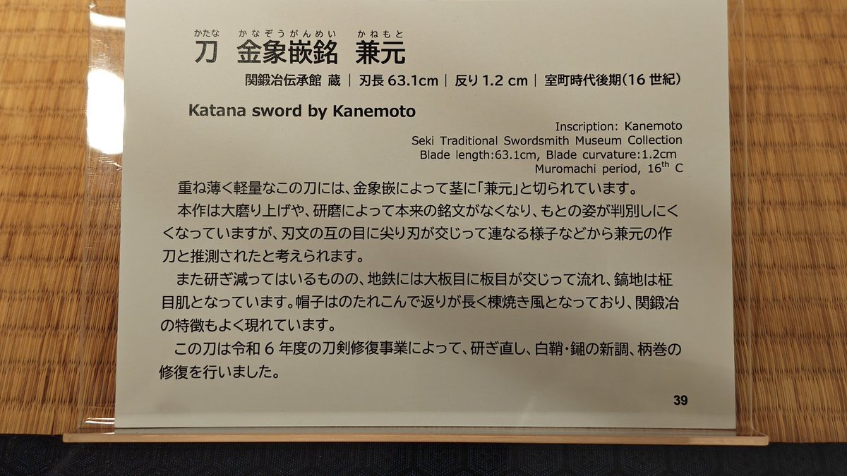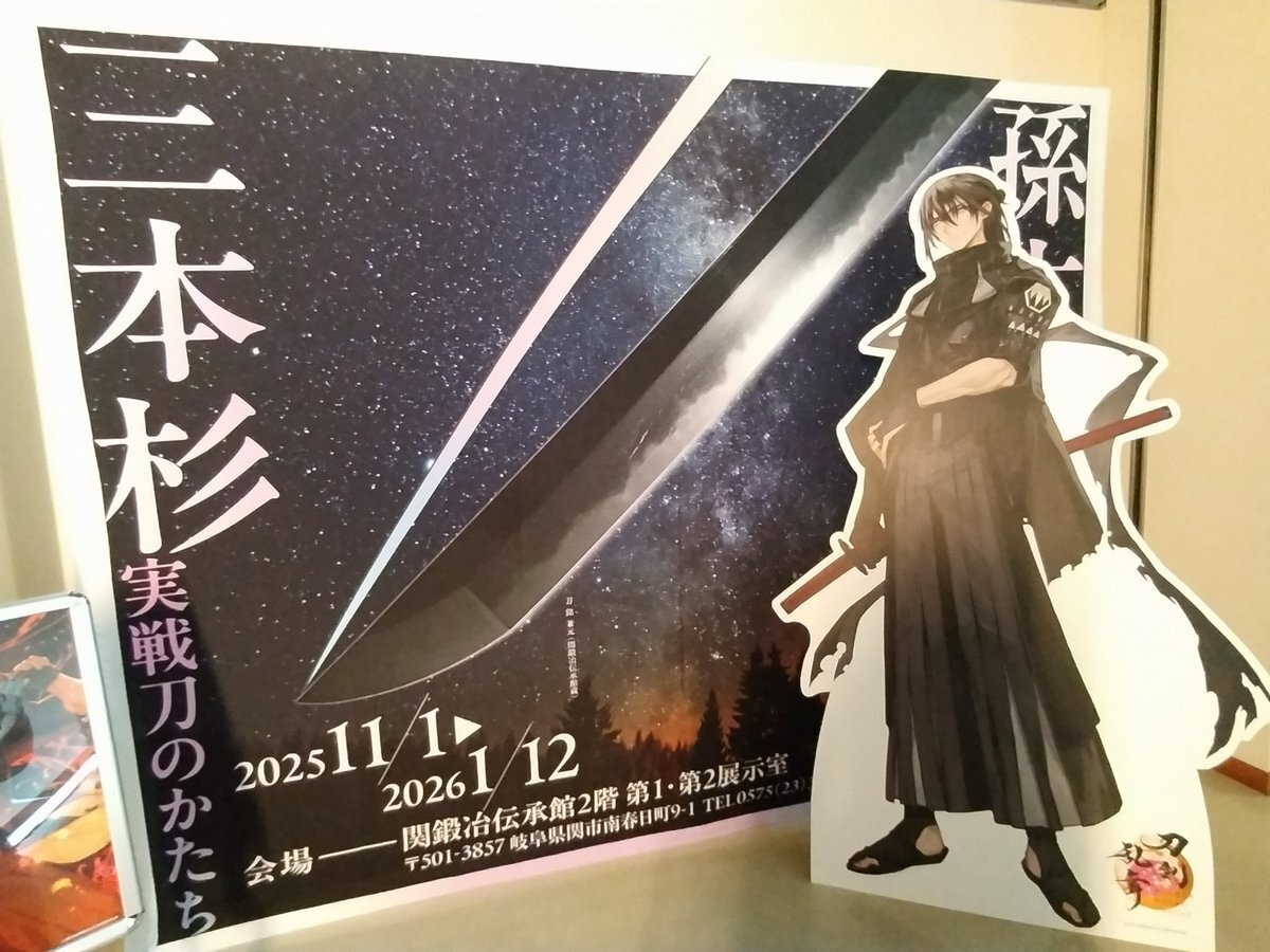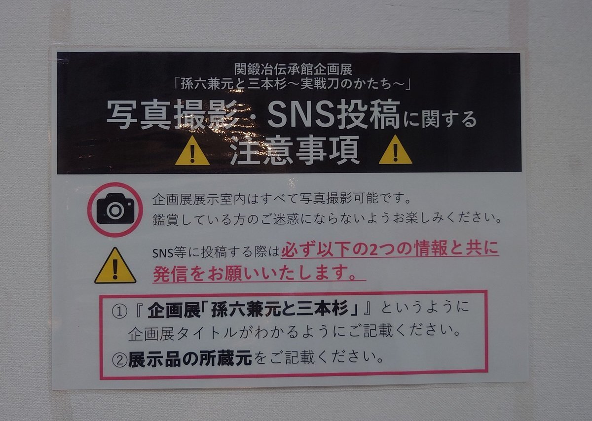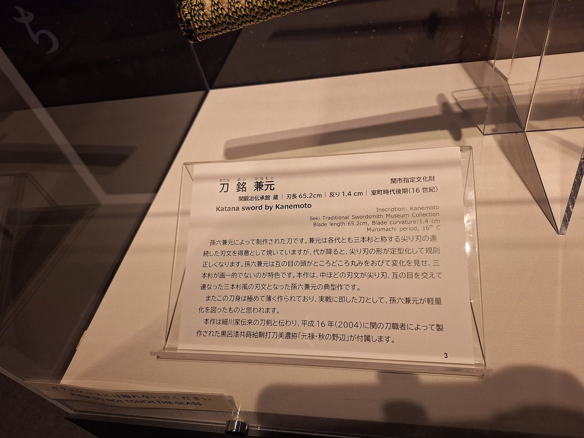 先日 #関鍛冶伝承館 さんの 企画展「孫六兼元と三本杉」みてきた!!去年は予定日を会期末にしてたせいで天候に恵まれず行きそこねたので今回はもう初っ端で行ったけど、2階の企画展室では入り口から館所蔵の兼元がドドドンとお出迎えくださり圧倒されたわ笑 pic.x.com/8MLpHDoLcq