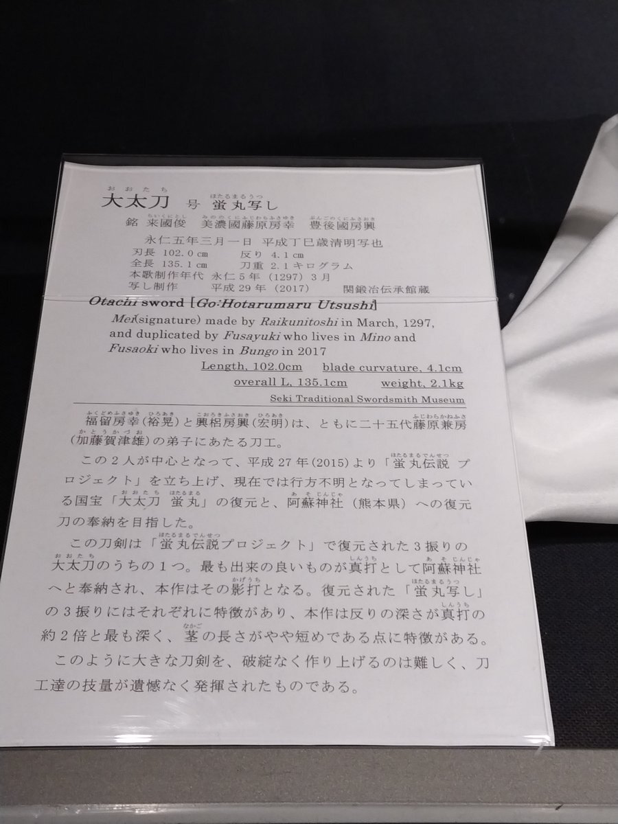 #関鍛冶伝承館 #孫六兼元と三本杉展 蛍丸や山鳥毛の写しもあり、審神者大歓喜 見どころ満載でした 重ねの薄〜〜い(5ミリくらいに見えた)孫六さんもすごかったけど、 個人的には刀身彫刻の超絶技巧みたいな短刀・脇差が一番インパクトありました