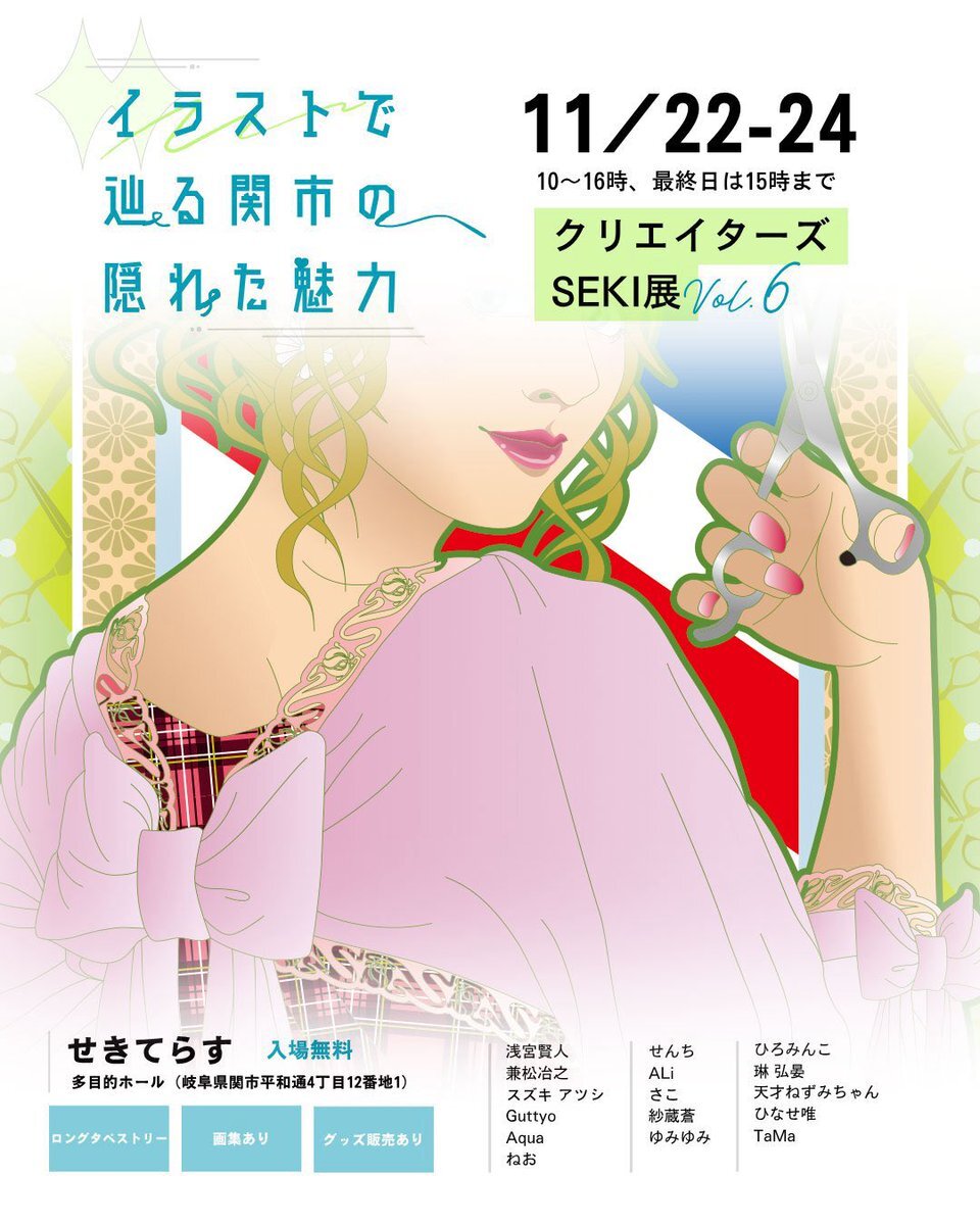 【展覧会情報】今月22(土)~24(月•祝)に行われる #クリエイターズSEKI展6 に出展します!16名の作家による作品がロングタペストリーとなって展示されます。 関市と言えば刃物!自分は“理容鋏✂️”を描きました ぜひ会場の #せきてらす へお気軽にお越し下さいませ! #関市 #岐阜県 #イラスト展 #創作