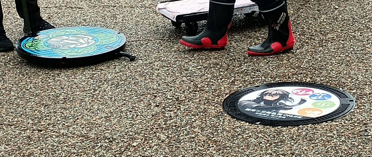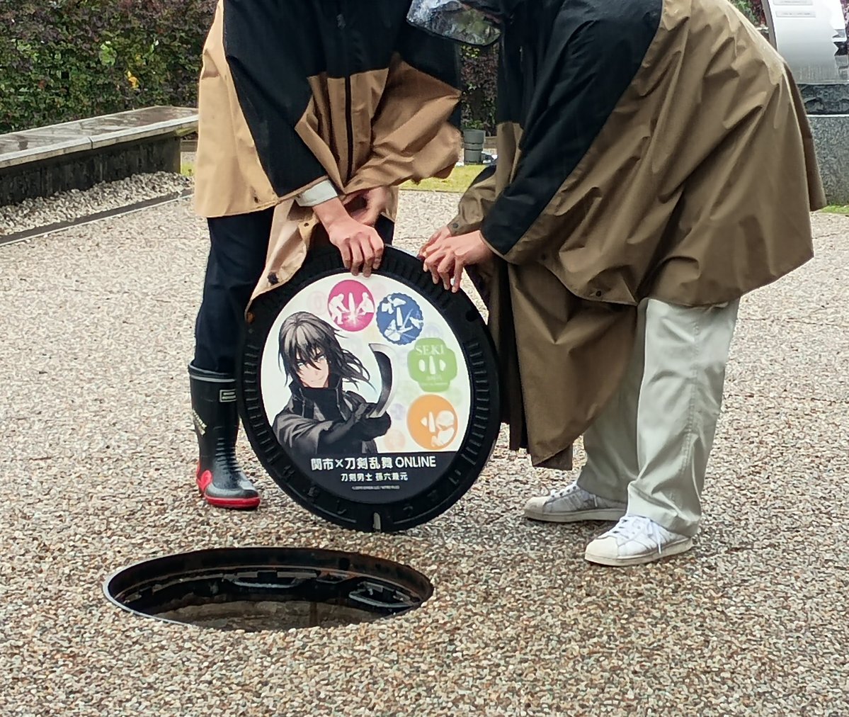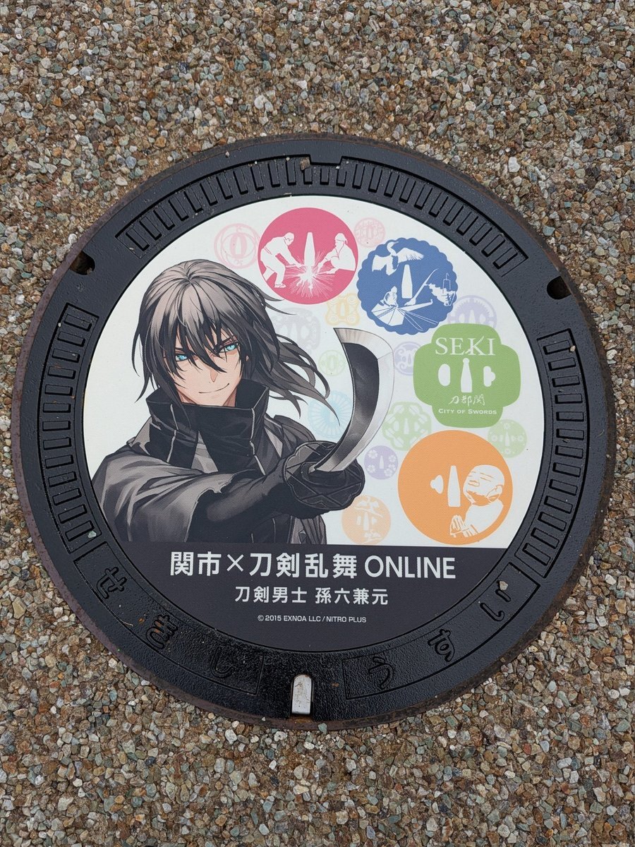 岐阜県関市の「せきてらす」敷地内に、孫六兼元さんのマンホール設置作業されてた〜(式典的なのやってなくて本当に設置作業だった) ゴトッと重い金属音とともにマンホール蓋が設置されてました〜 旧マンホールも関市のカラーマンホールだったんだね #関鍛冶伝承館 #孫六兼元と三本杉展 pic.x.com/m2vIm6rohw