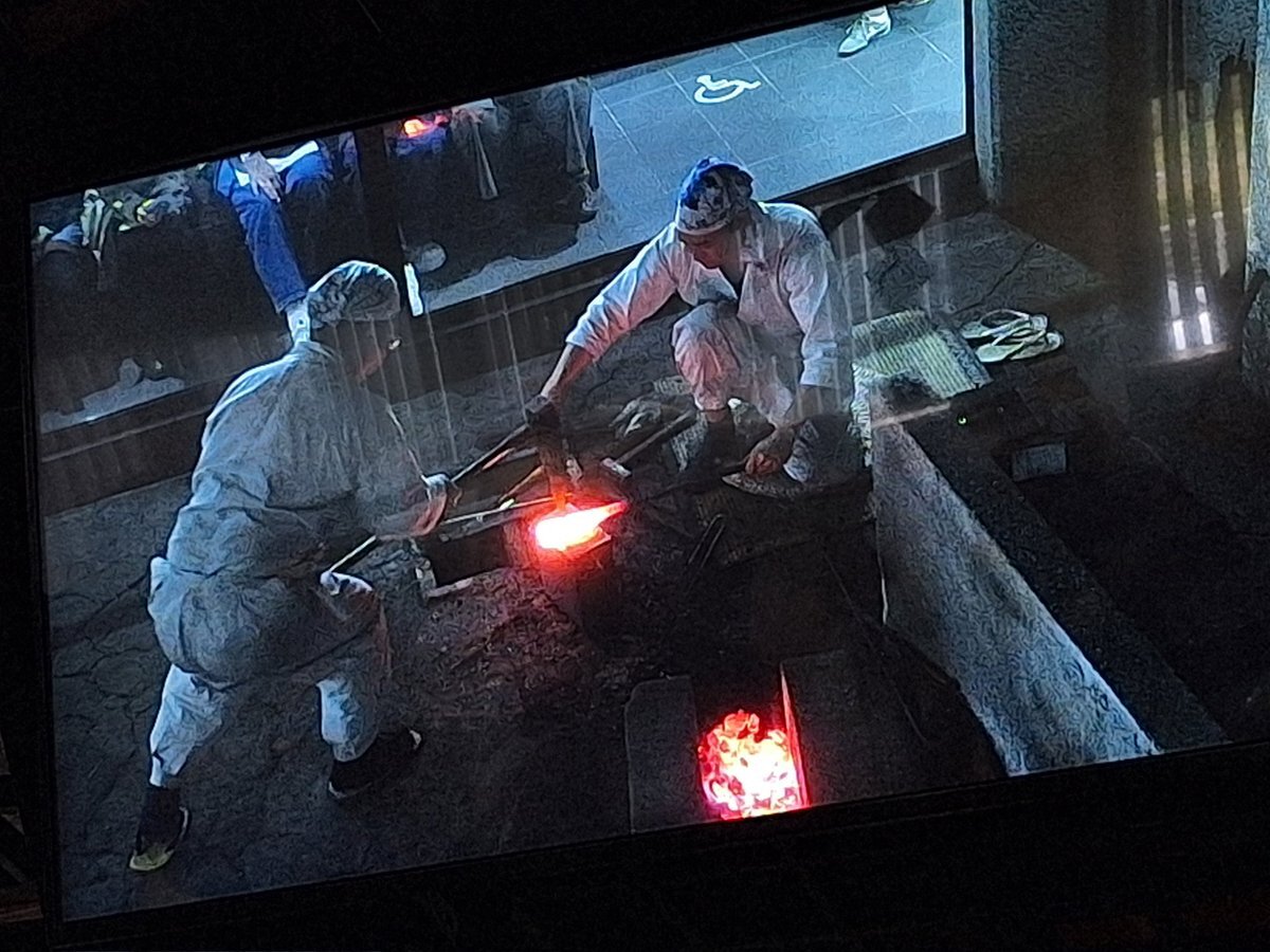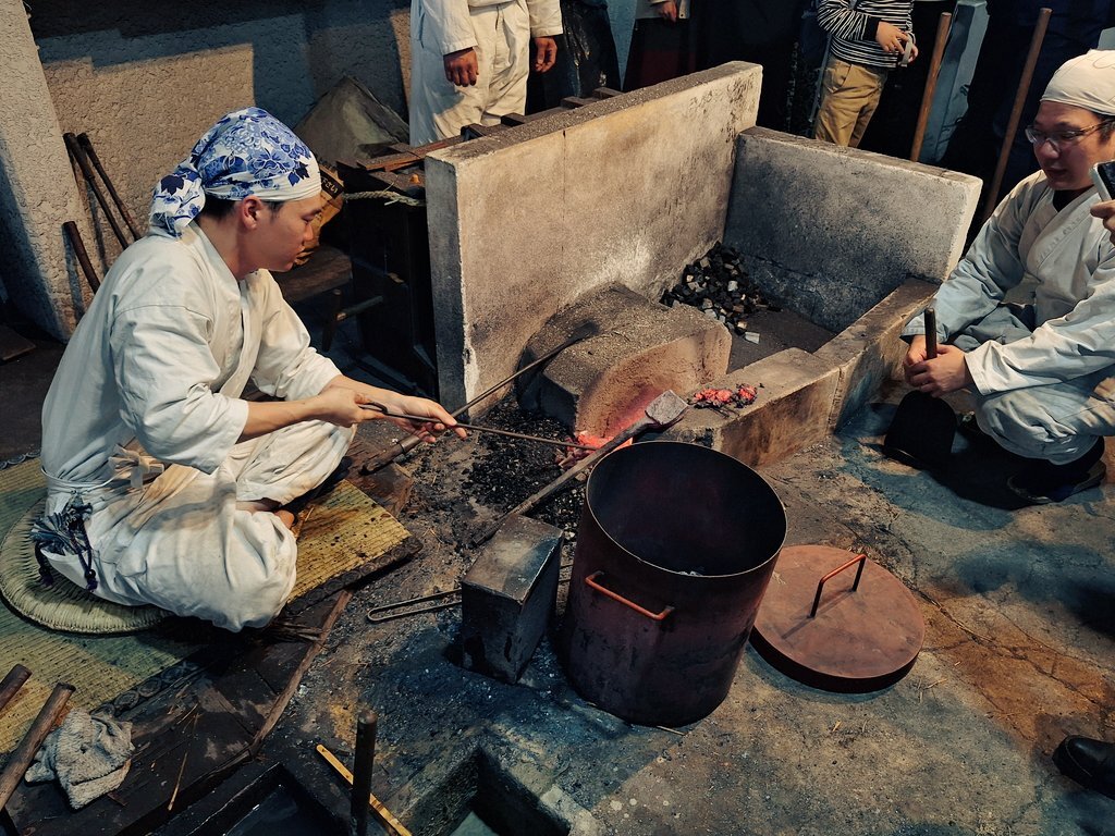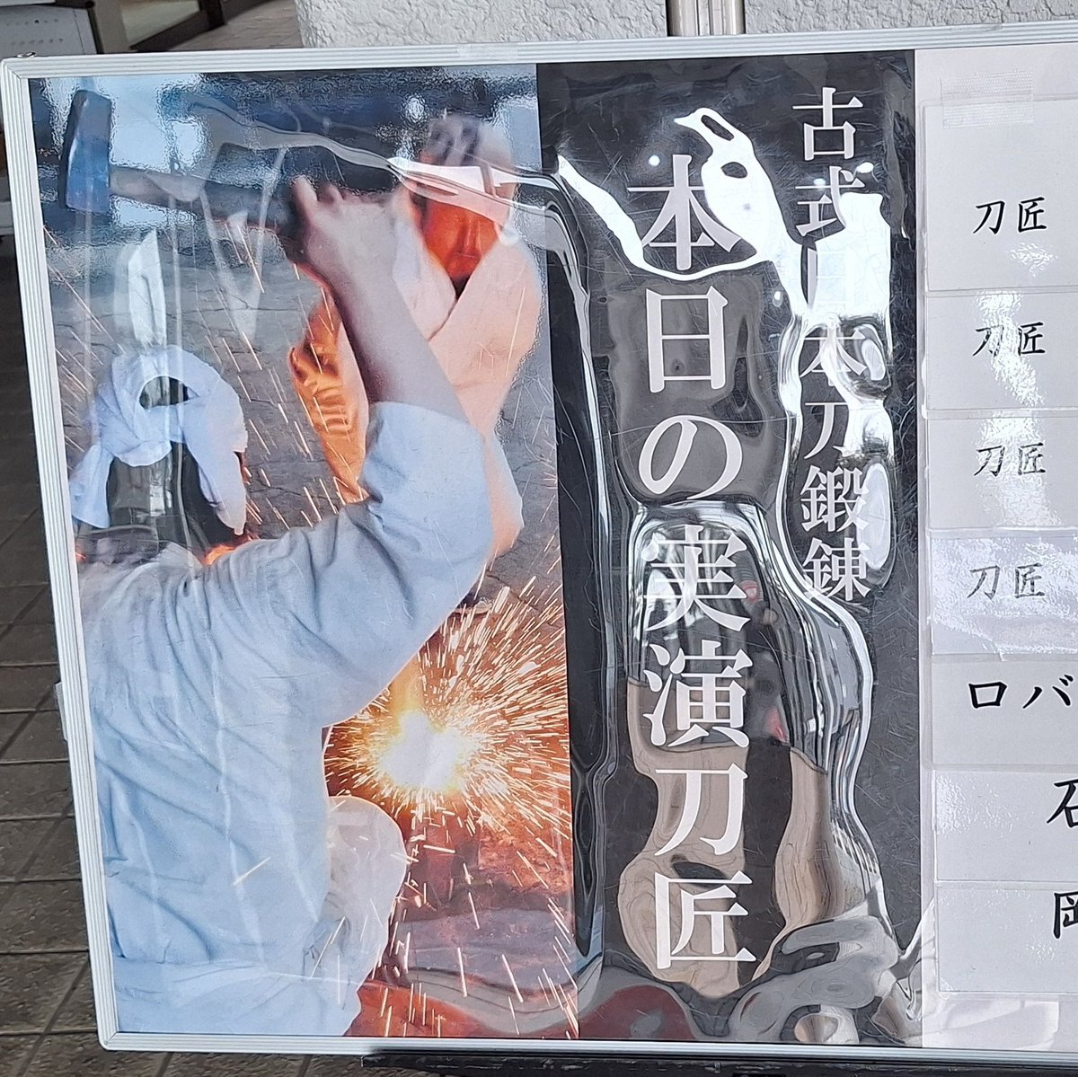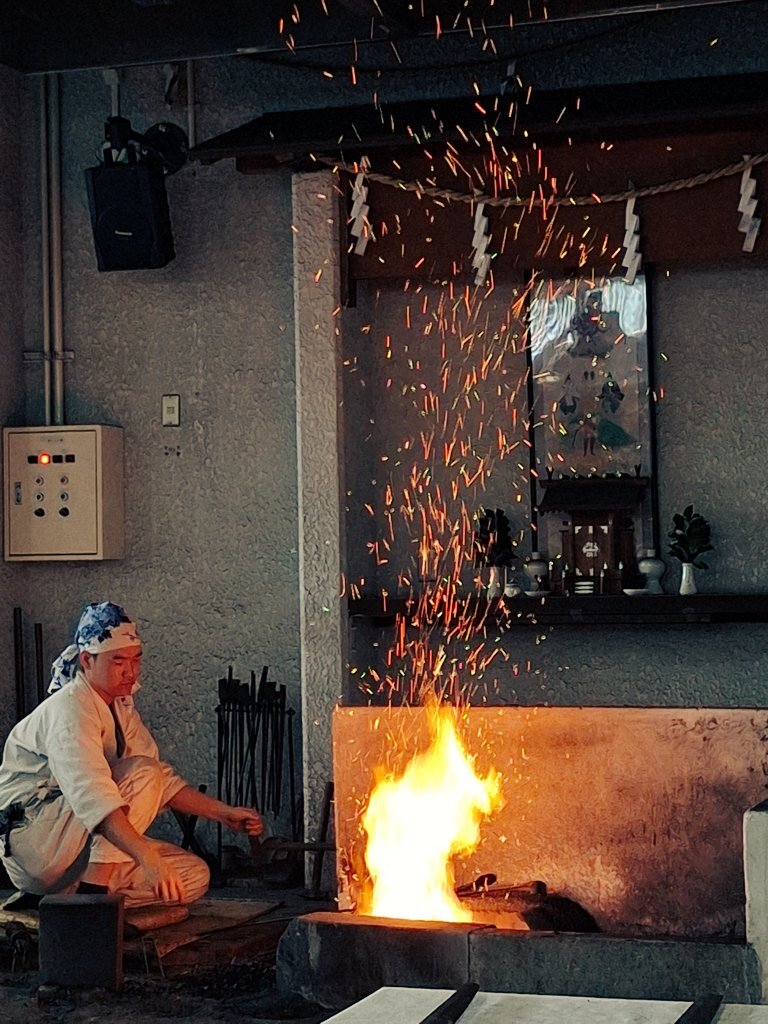 あと絶対に見たかった古式日本刀鍛錬の実演も見られて大満足!!刀匠さん自ら解説してくださったり、自由質問タイムがあたり、見えない位置の人も鍛錬姿が見られるように天井モニターも完備で至れり尽くせりでした 槌を打つところ初めて見たので大迫力やった…… #関鍛冶伝承館 pic.x.com/6H7idtzwMW