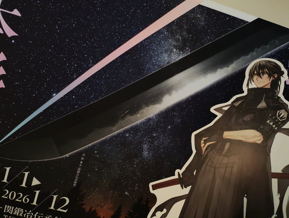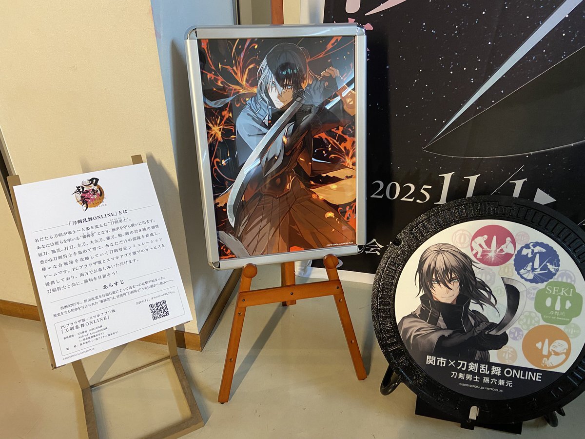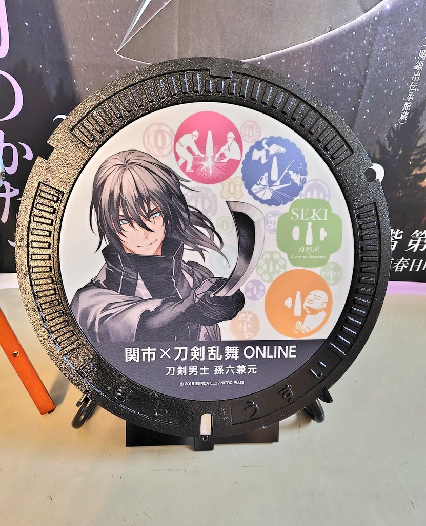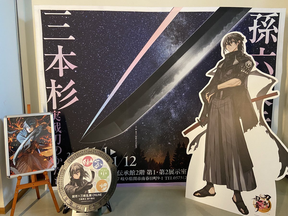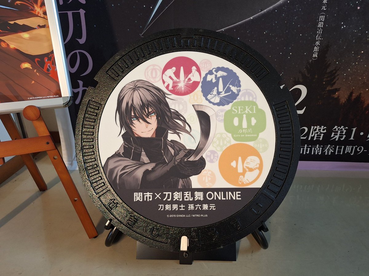 孫六兼元さんコーナー👏 午前はまだマンホールの蓋はここに並んでました。 コラボのポスター、 夜空に流れ星のような一筋✨ 夜も月夜に照らされて 戦っていたのかなぁ🗡️ #刀剣乱舞 #関鍛冶伝承館 #孫六兼元と三本杉展 pic.x.com/XdV0Y4Z0Ey