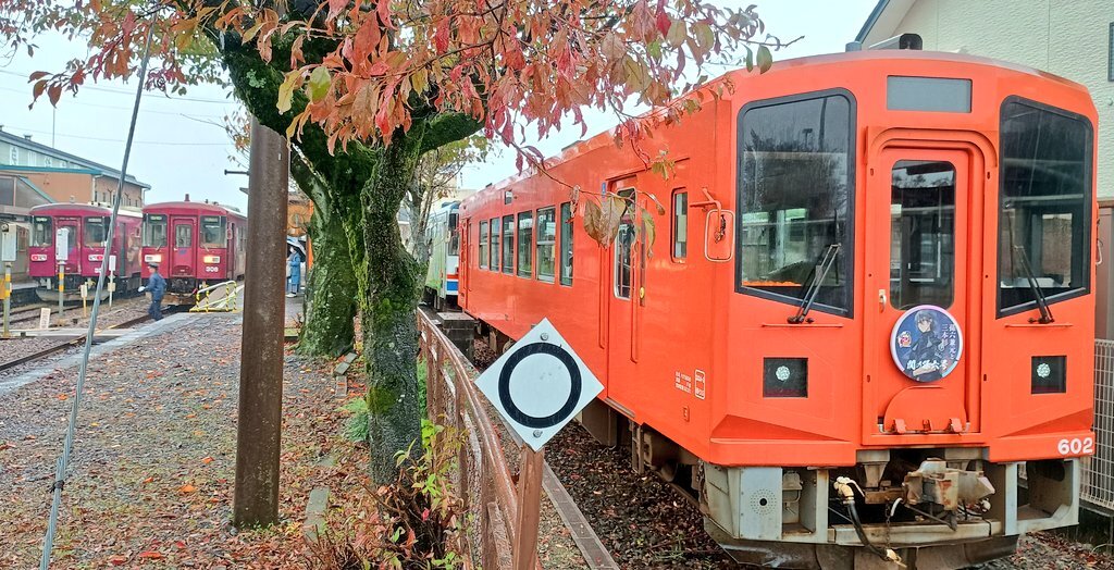 今日の長良川鉄道602号(関の孫六号)は運用が無かったのか、関駅の車庫っぽいところに置かれてました〜 何より、何より、駅名標の孫六兼元さんの腕!雨も滴る良い刀剣男士ぢゃありませんか!(以外、自主規制) #関鍛冶伝承館 #孫六兼元と三本杉展 pic.x.com/2LLU67fpna