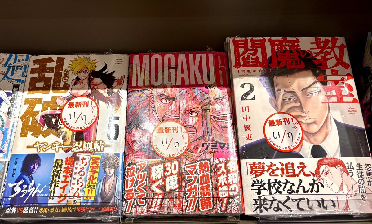 \#秋田書店 少年向け新刊コミックス入荷‼️/ 11/7発売⭐️その⑦︎💪('ω'💪) #乱破ーヤンキー忍風帖ー #閻魔の教室 #MOGAKU #火喰鳥 羽州ぼろ鳶組 #バキ外伝烈海王は異世界転生しても一向にかまわんッッ #バキ外伝ガイアとシコルスキー #WORST外伝グリコ #WORST外伝ドクロ pic.x.com/oCe99hOhD6