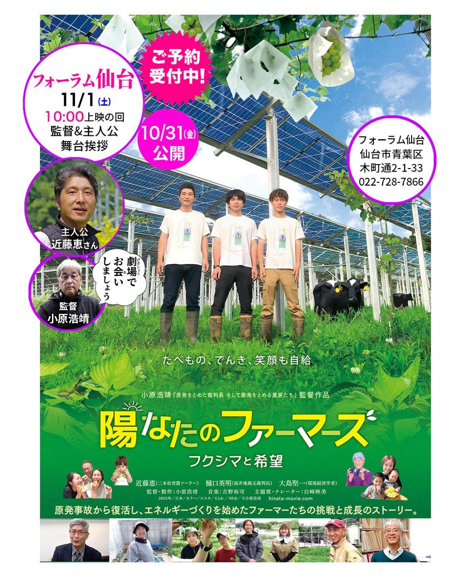 #陽なたのファーマーズ #フォーラム仙台 公開!10/31(金) 11/1(土)10時上映後、監督&主人公舞台挨拶です! ご予約受付中!よいお席はお早めに! forum-movie.net/sendai/movie/6…