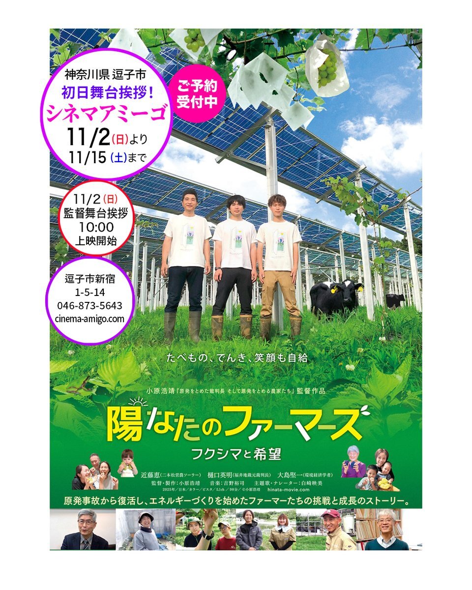 #陽なたのファーマーズ 逗子市 #シネマアミーゴ 公開!11/2(日) 11/2(日)10時上映後、監督舞台挨拶です! ご予約受付中!よいお席はお早めに! cinema-amigo.com pic.x.com/kG3EeXU8Iy