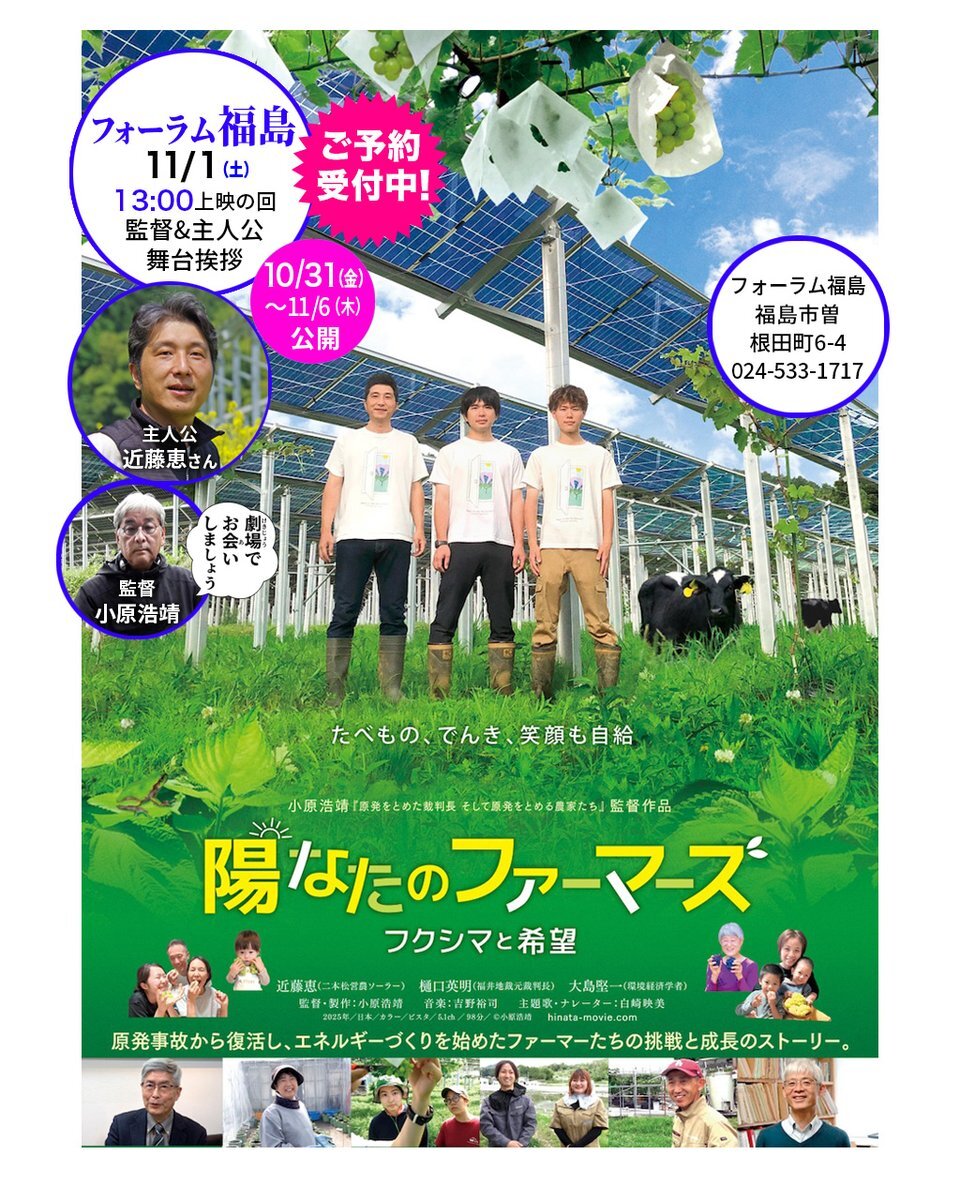 #陽なたのファーマーズ #フォーラム福島 公開!10/31(金) 11/1(土)13時上映後、監督&主人公舞台挨拶です! ご予約受付中!よいお席はお早めに! forum-movie.net/fukushima/movi… pic.x.com/zWvpLOzMPA