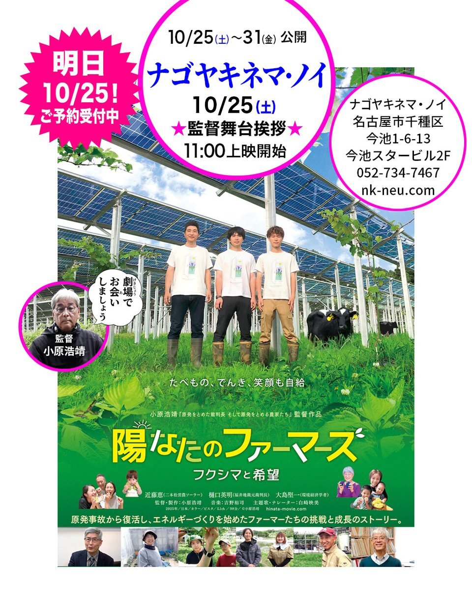 #陽なたのファーマーズ 明日10/25 #ナゴヤキネマ・ノイ 11:00の回、監督舞台挨拶つき。 ご予約は劇場サイトで nkneu.sboticket.net よいお席はお早めに! pic.x.com/IEGzWtoOQj