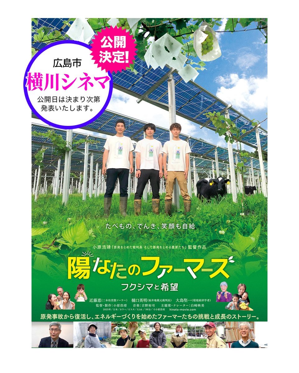 たべもの、でんき、笑顔も自給。原発事故から復活し、エネルギーづくりを始めたファーマーたちの挑戦と成長のストーリー。 \\いよいよ来週末、『#陽なたのファーマーズ フクシマと希望』舞台挨拶&トーク 開催‼️// いよいよ1週間後の11/14(金)から当館で上映の『#陽なたのファーマーズ x.com/aioiza_roxy/st…