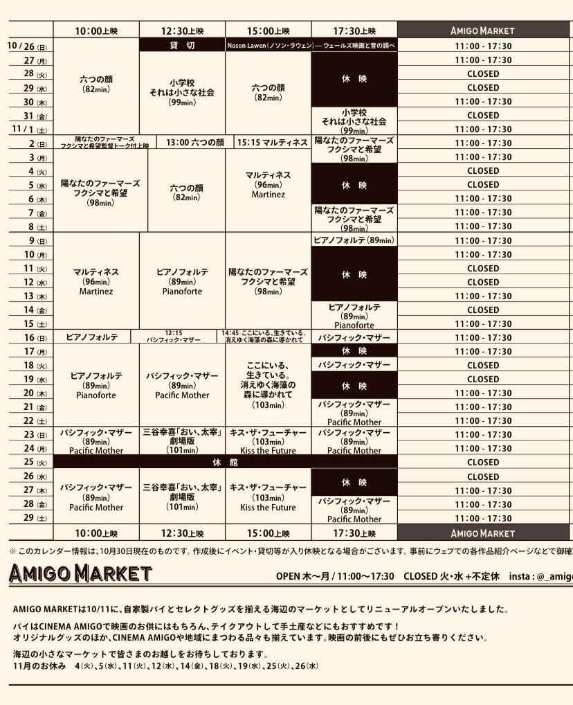 11月上映スケジュールです。皆様のご来場を心よりお待ちしております。 11.2-11.15 #陽なたのファーマーズ 11.2-11.15 #マルティネス 11.9-11.22 #ピアノフォルテ 11.16-11.29 #パシフィックマザー 11.16-11.22 #ここにいる生きている 11.23-12.6 #ザフューチャー 11.23-12.6 #三谷幸喜「おい、太宰」 pic.x.com/GKnhrChww4
