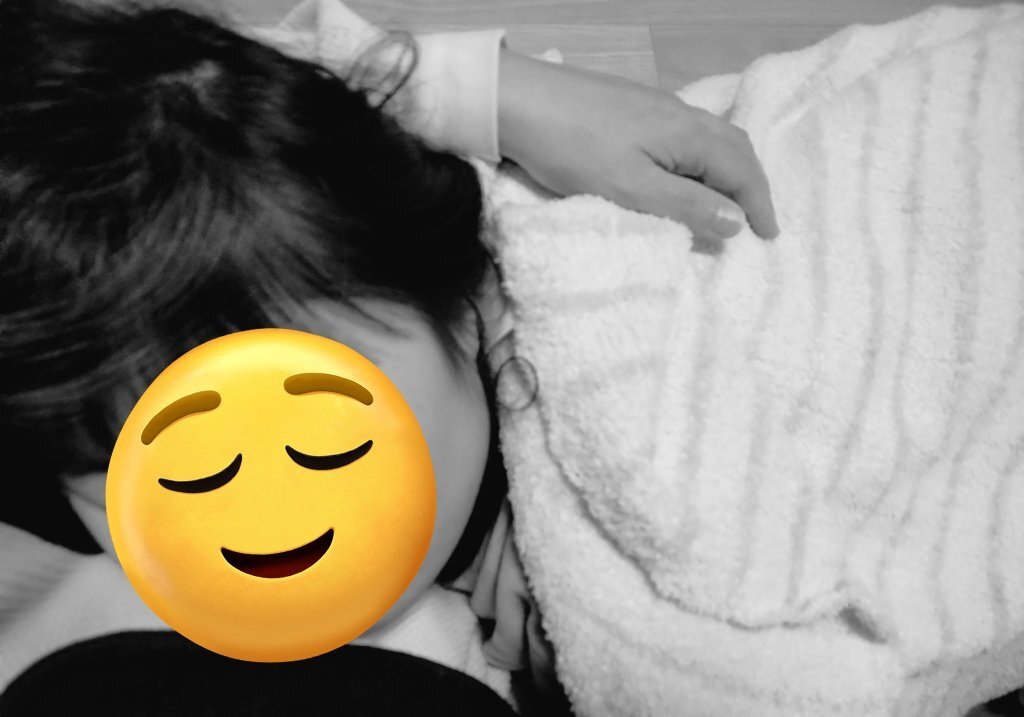 授乳後だったから吐き戻し防止に授乳クッションで傾斜つけた。セルフねんね😴 2頭身にモチモチほっぺ。カワエエ。