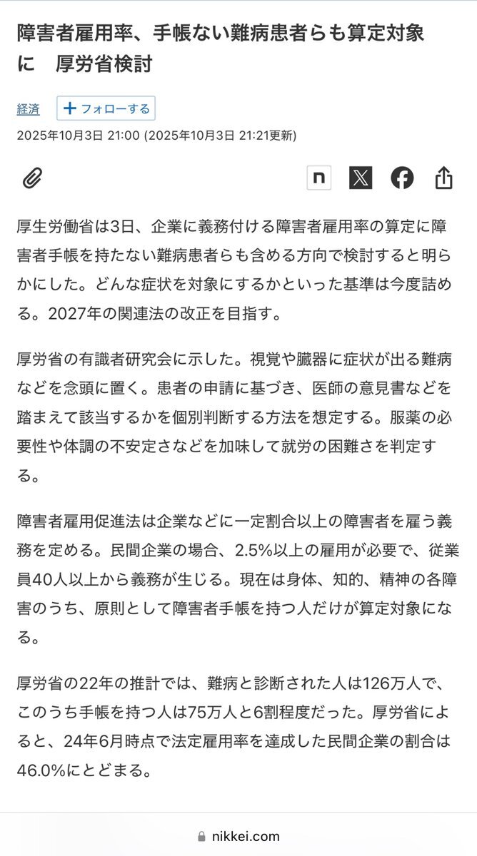 難病患者も 実は障害者雇用法に含まれてるのだけれど同僚も会社も そのことを知らない。 ニュースをきっかけに、難病を抱えながら働くみんなが少しでも生きやすくなりますように✨ #全身性エリテマトーデス #SLE #難病 #膠原病 #就労支援 #免疫抑制剤 #障害者雇用促進法 #難病就活ナビ pic.x.com/BH2jmPWCmZ
