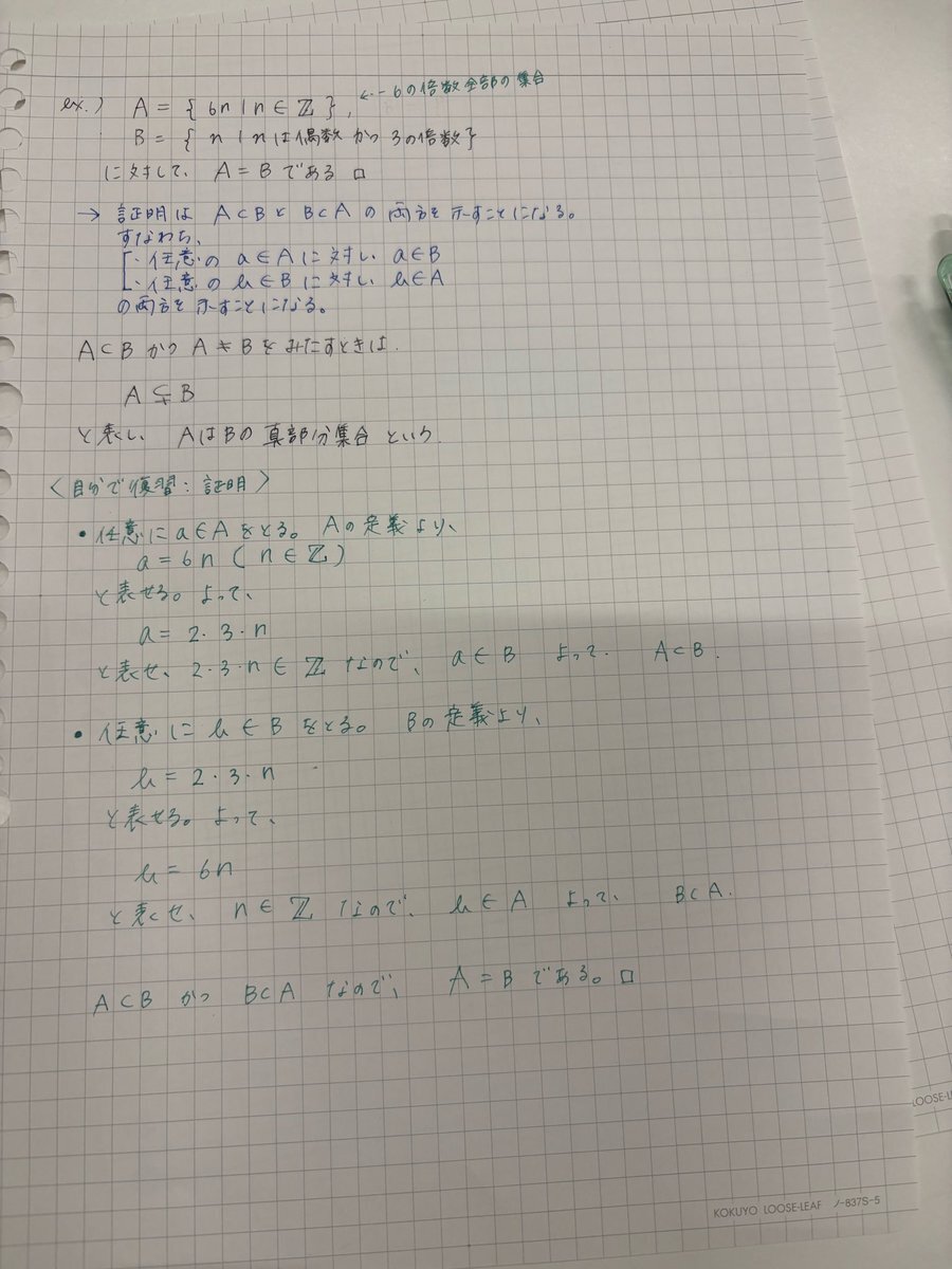 今日は、すうがくぶんか講座「集合・位相入門」の2コマ目(/20コマ)の途中までを受講しました。 「当たり前のことでは?」と思うような命題が後々どうして重要になってくるのか説明してくれてありがたかったです。あと、Uの意味知らなかったので、知れて嬉しい! #集合と位相 #すうがくぶんか pic.x.com/uhM4kBc2BP x.com/fumi_fum_fum/s…