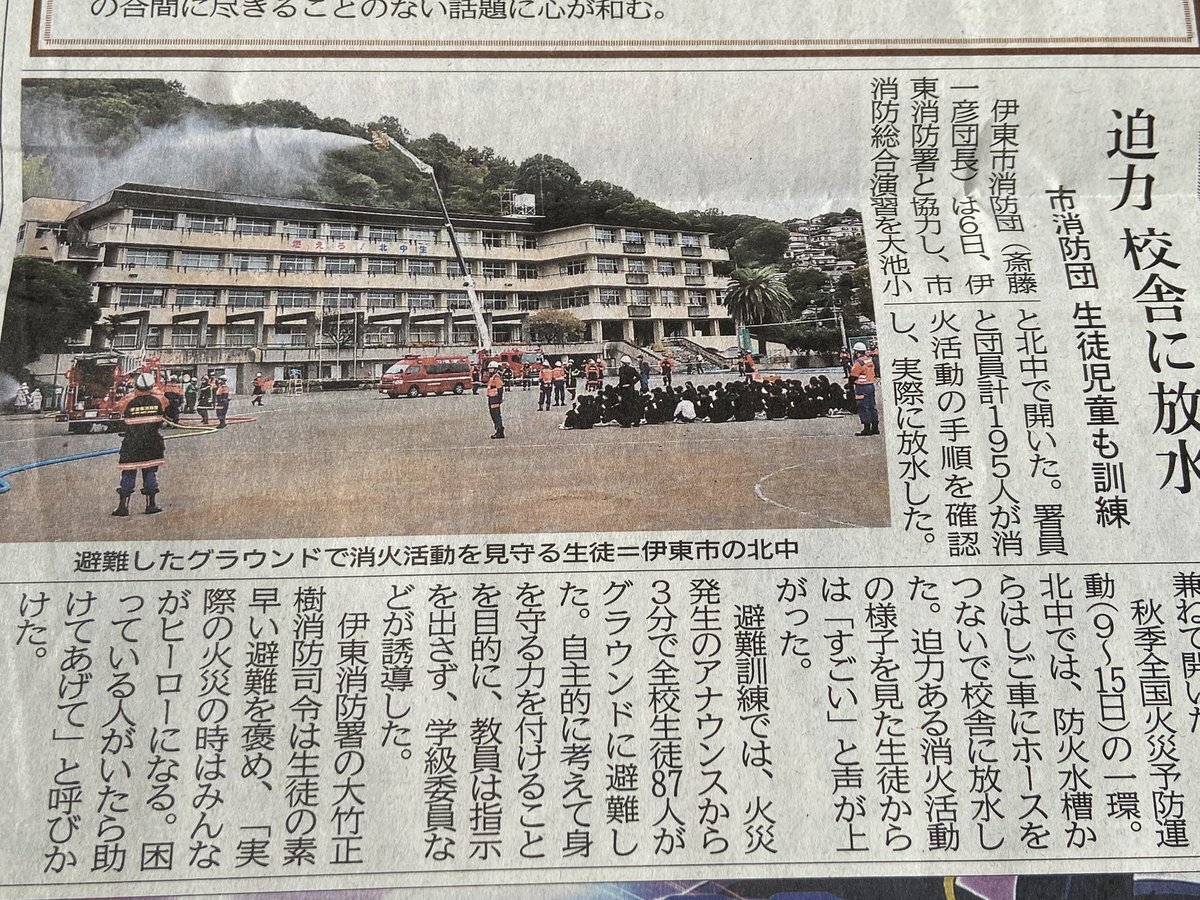 伊東消防団は伊東消防署と協力し、消防総合演習を北中学校で行いました。 はしご車にホースをつないで放水した校舎には「燃えろ北中」の横断幕が! #伊東市 #りんがふらんか城ヶ崎文化資料館 #入場無料のミュージアム #雨の日伊豆高原 #雨の日のお出かけ pic.x.com/jQufef49LR
