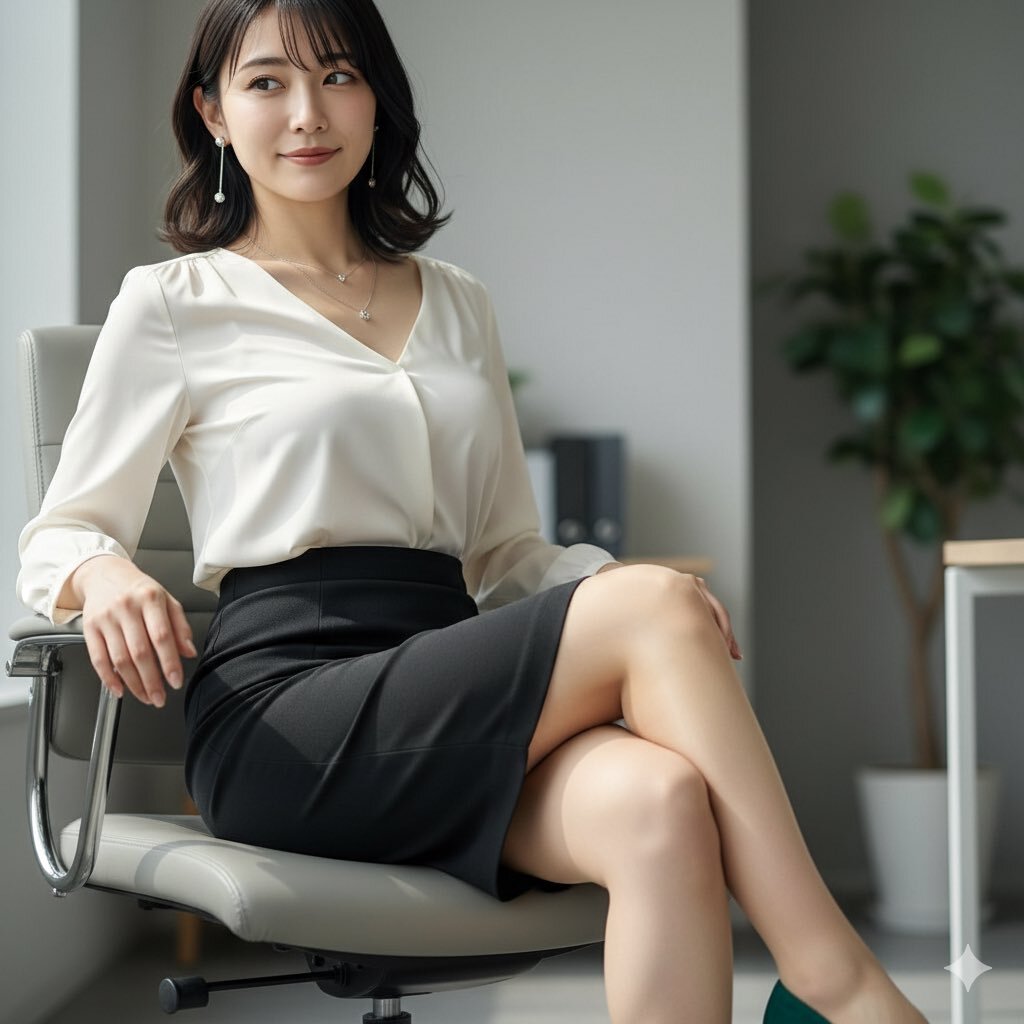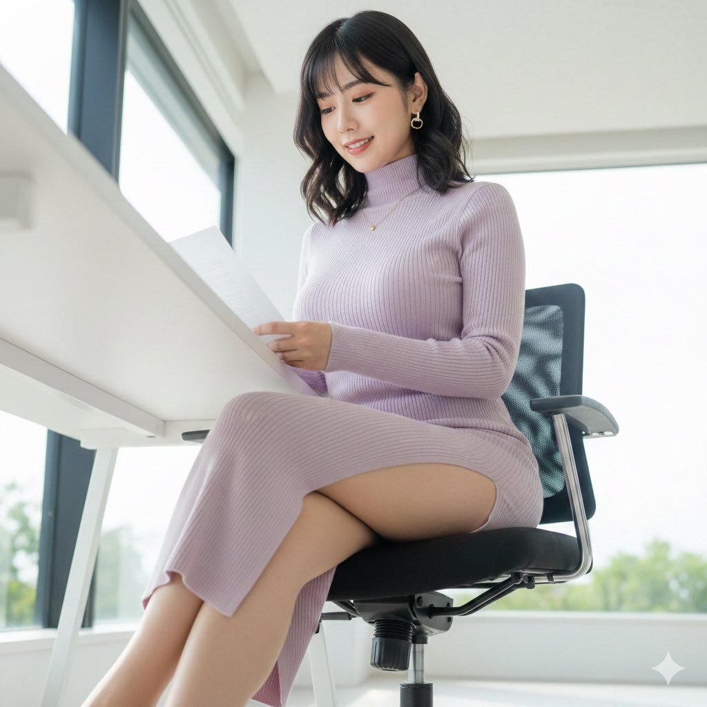 朝一のオフィス、誰もいないの。この席、あなたにだけ近い距離感な気がして、ちょっとドキドキしちゃいますね。仕事前に、ちょっとだけ目を閉じて深呼吸する瞬間が好きかな。貴方は朝、出勤前に必ずすることは? #雨宮ちぐさ #AIart #オフィスレディ #美脚 #朝活 pic.x.com/b2Fu0JiXPE