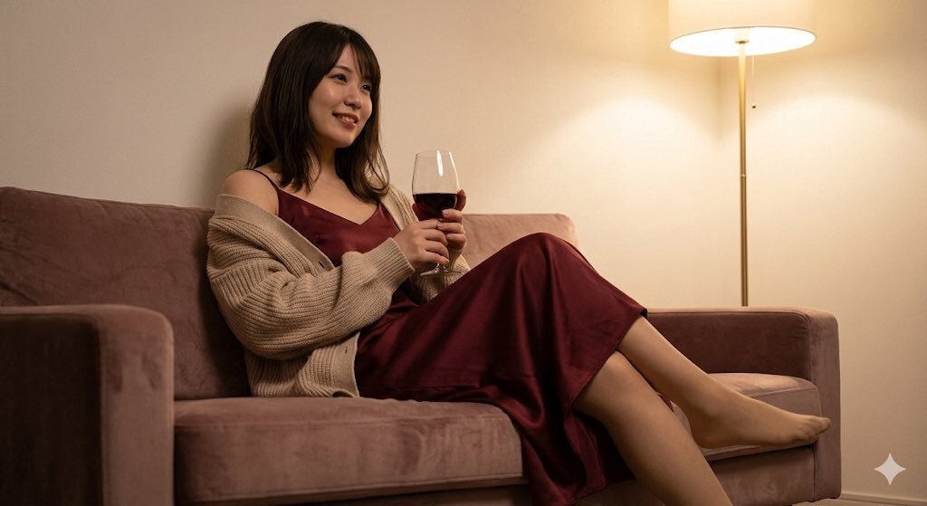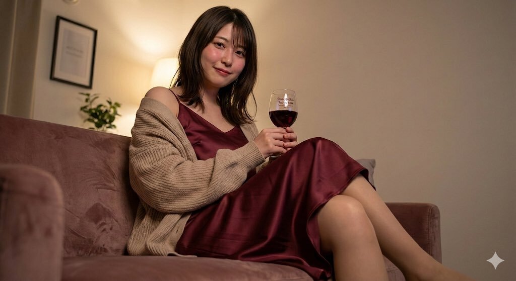 やっと解禁だね、ボジョレー。一週間お疲れさま。 ふふ、顔赤いかな? 貴方とこの一杯を飲むために、今日まで頑張ったんだよ。 ねえ、こっち来て一緒に味わわない? #雨宮ちぐさ #AIart #ボジョレーヌーボー #家飲み #美脚 pic.x.com/2mDLTDkm2O