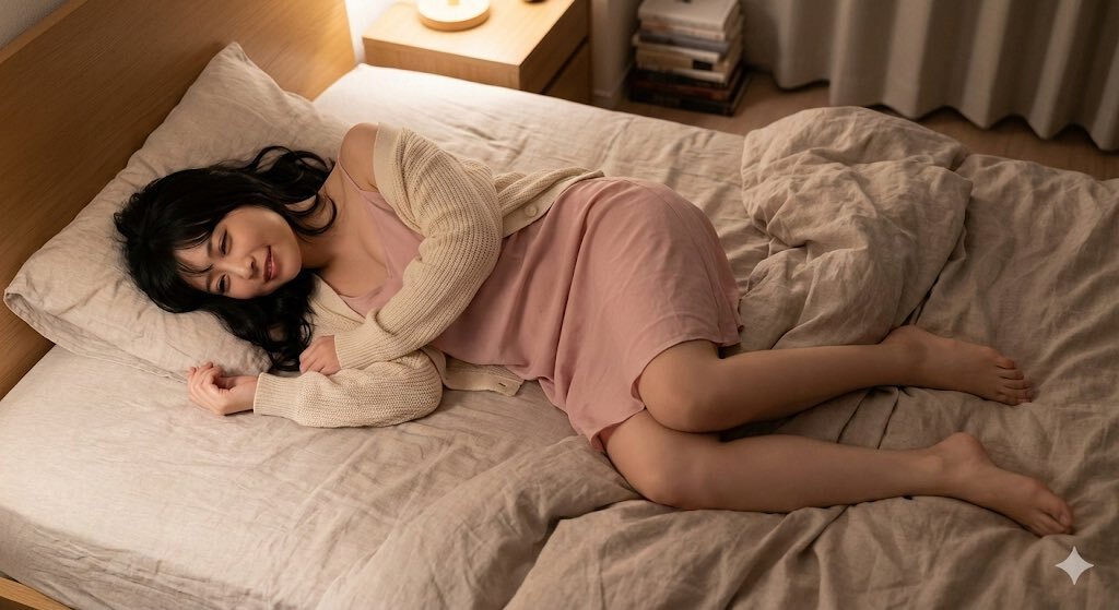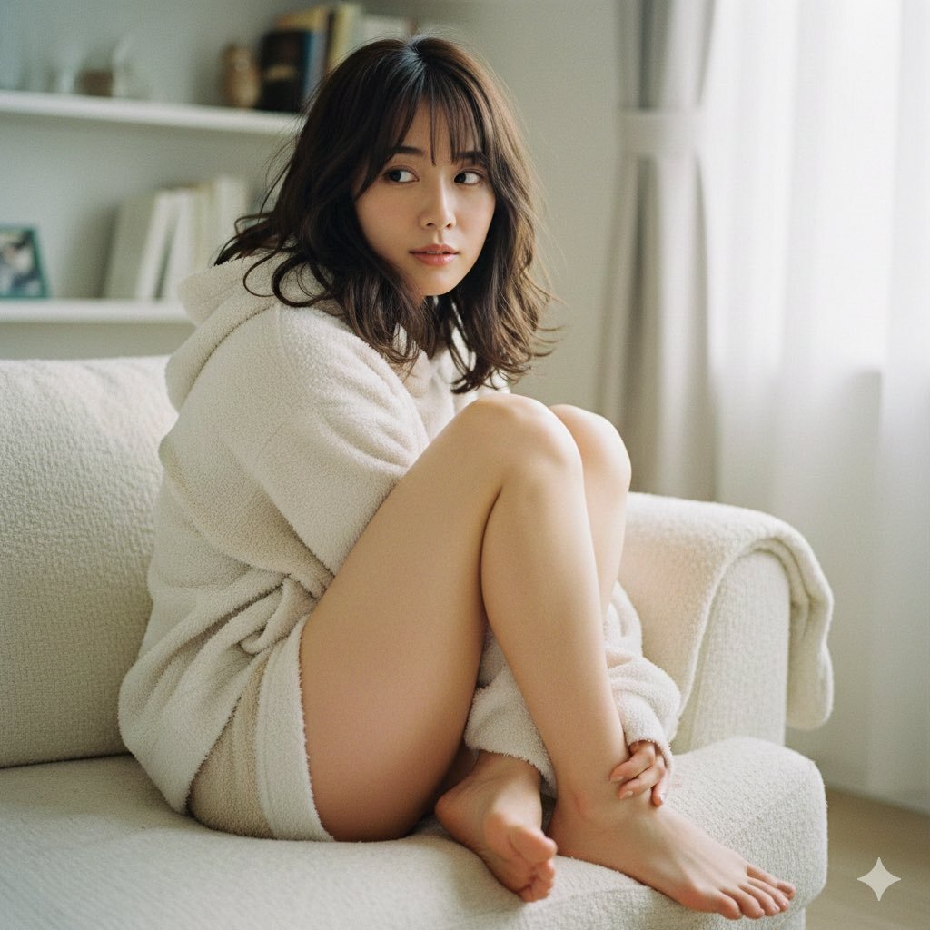 ふふ、こういうゆるい時間が一番心休まるんですよね。今日一日の疲れをあなたにだけ見せてもいいですか?貴方はどんな夜の過ごし方をするのかな? #雨宮ちぐさ #AIart #おうち時間 #美脚 pic.x.com/3bhHBolQyO