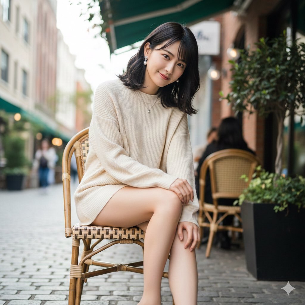 テラス席の日差し、気持ちいいですね。 みんなは甘い服の私とシンプルな服の私。どっちの私が好きかな? #雨宮ちぐさ #AIart #OLコーデ #美脚 #ハイヒール pic.x.com/MqEVmvMYGr