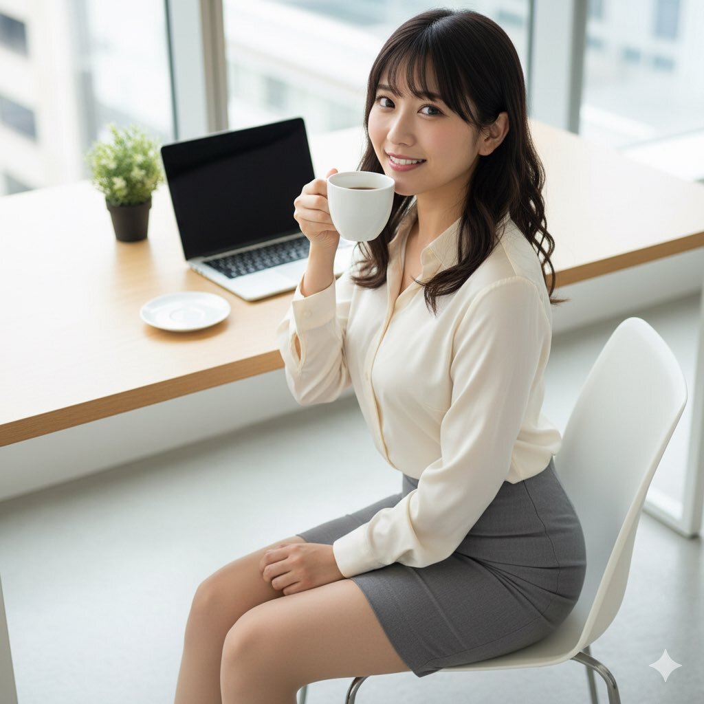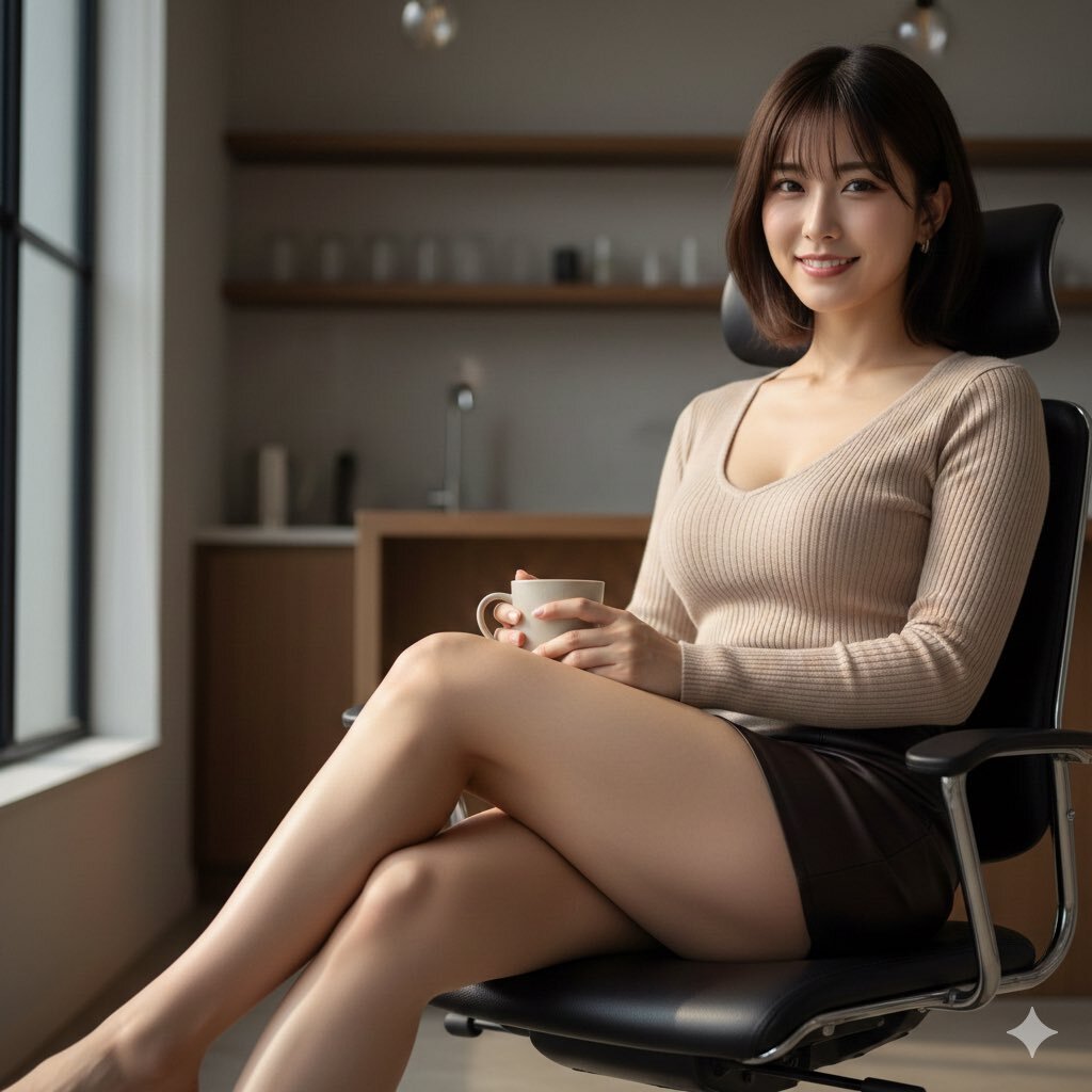 ふぅ、会議やっと終わりましたね。休憩室のコーヒー、意外と美味しいんですよ?…ねえ、私の隣、空いてますけど。午後も頑張れるように、一緒に一息、つきませんか? #雨宮ちぐさ #AIart #オフィス #コーヒーブレイク #美脚 pic.x.com/qPlxKrP2RL