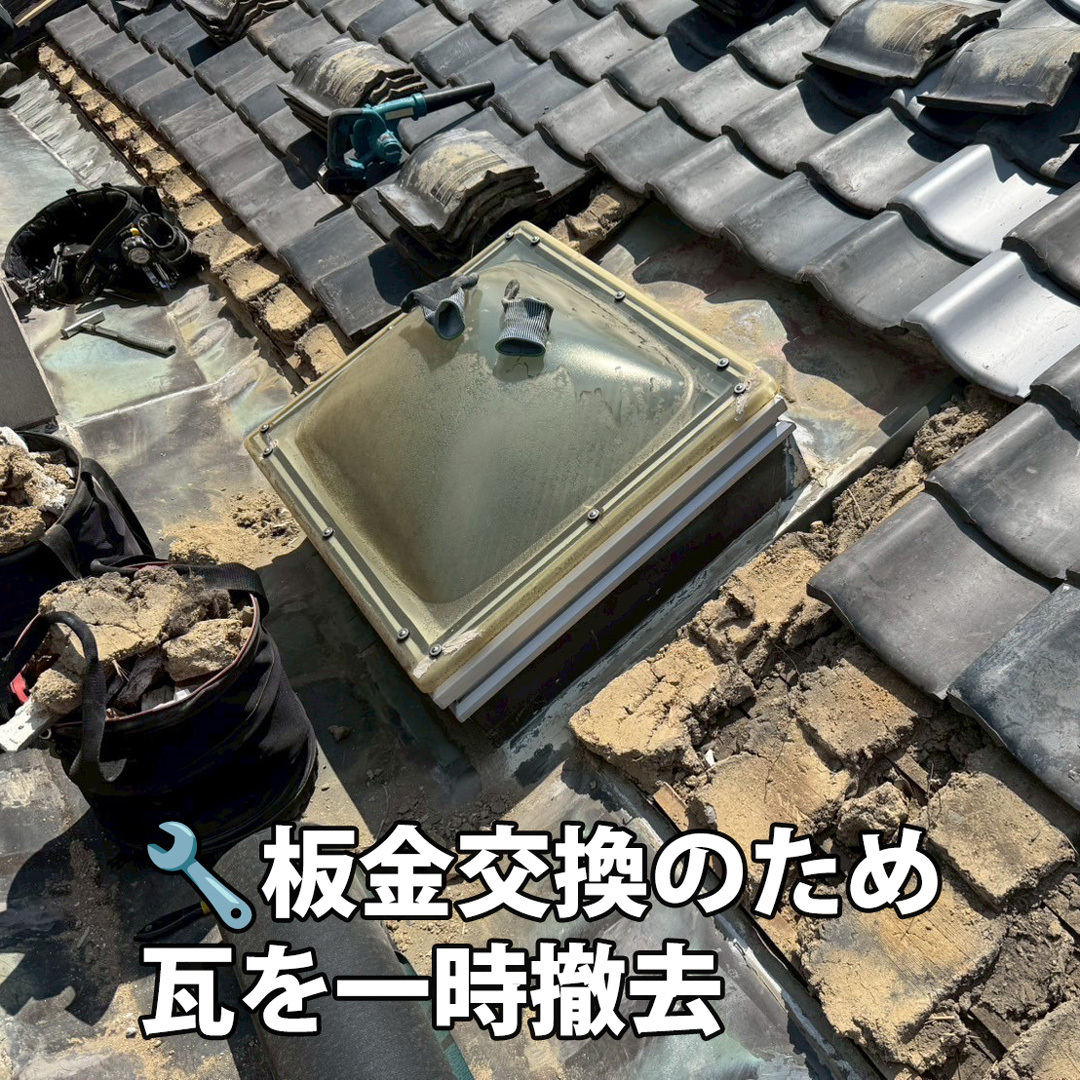 1階の天井からの雨漏りを調査したところ、増築部の谷板金と天窓まわりの劣化が原因でした。銅板を撤去し、耐久性の高いガルバリウム鋼板に交換して防水性能を復旧しました #屋根雨漏りプロ #屋根工事 #屋根修理 #雨漏り修理 #雨漏り部分修理 #天窓雨漏り修理 #瓦屋根雨漏り #漆喰工事 pic.x.com/UfePb1g8gb