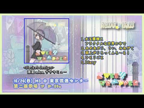 10/26(日) #M3秋2025 にて、Stella Trillsより頒布予定のVSinger #雨衣 コンピレーションアルバム『SWEET WRAPPER』のジャケットイラスト、ロゴデザインを担当しました🍬 雨降りな1日のおともにお裾分け☔️ 第二展示場1F か-09a です、よろしくお願いします! #M3秋2025告知 #M3 #雨衣のおうた pic.x.com/O1xpUHwk0y