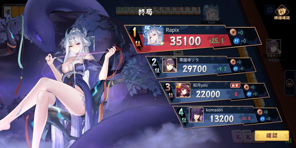 零園寺ソラさんの雀魂配信に参加して来ましたー! 1位なかなかとれなーい😇 とりあえず飛ばなくてよかった! 役満狙いたいけどまだまだお勉強が必要デス…… 今日もありがとうございました✨ #零園寺ソラ #雀魂 #VTuber pic.x.com/0fjTmOtnyg x.com/reionzi_sora/s…