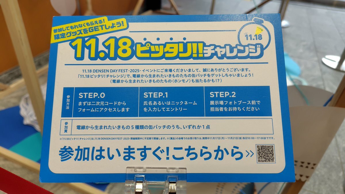 『DENSEN LANDrium』で11.18ピッタリ!!チャレンジなるゲームもやってました⏱️➿ タイマーを見ながらOK、何回でもチャレンジOKということもあり、5回目くらいでピッタリに! ピッタリ賞の電線のいきものと、参加賞の缶バッチもらいました✌➰ #いい電線 #電線の日 #日本電線工業会 #こねくと954 pic.x.com/v0aliF1wPz x.com/monnyu66/statu…