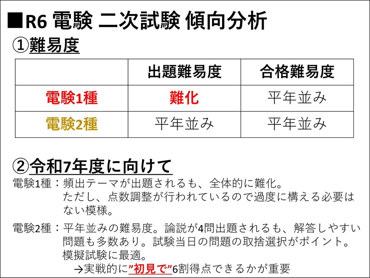【昨年の電験 二次 試験結果分析】 令和6年度 電験1種・電験2種 二次の結果分析です。 例年と異なり 電験2種 電力・管理は、計算2問、論説4問でした。 変則的な出題パターンでしたが、 今年は例年通り(計算3問、論説3問)になるだろうと思います。 →brionac-yu-yake.jp/column/license… #電験一種 #電験二種 pic.x.com/geGOasRfg8